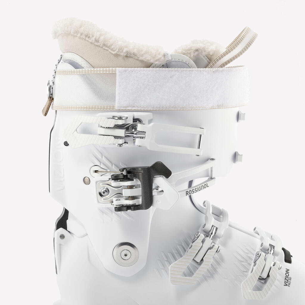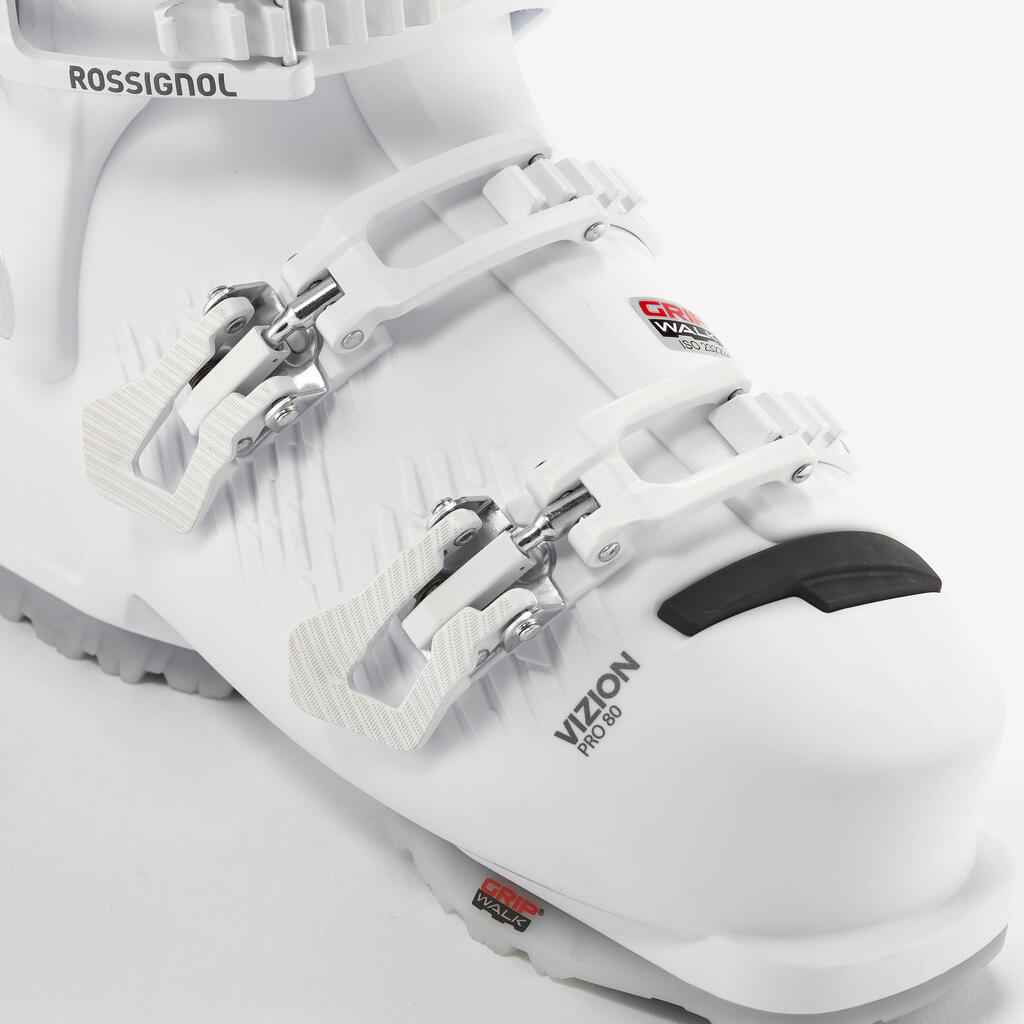 Designed for skiers looking for performance, but without the constraints of the boot, the Rossignol Vizion 4B Pro 80 MV ski boots feature STEP IN technology, which makes them easy to put on thanks to a wide opening. The double buckle makes it easy to open the boot and put it in the rest position.