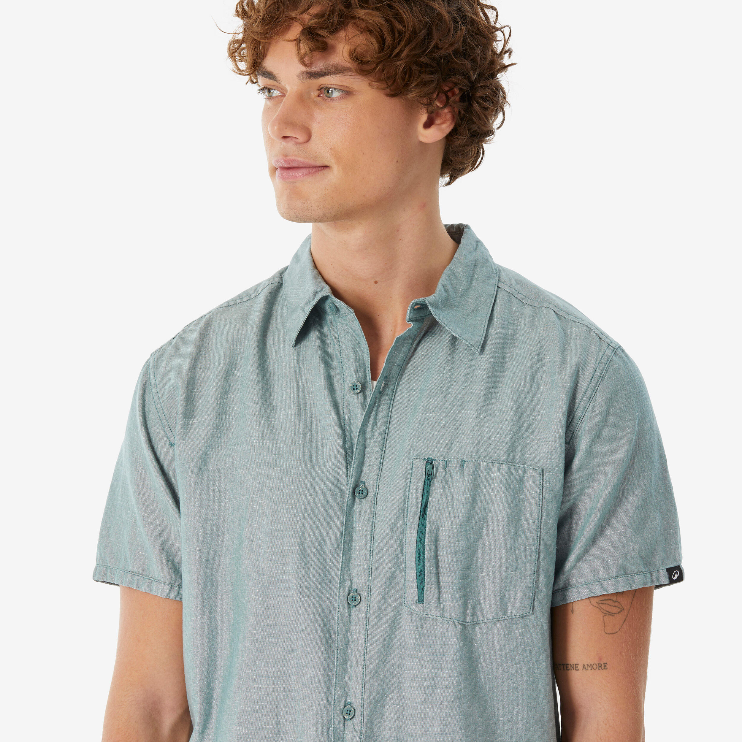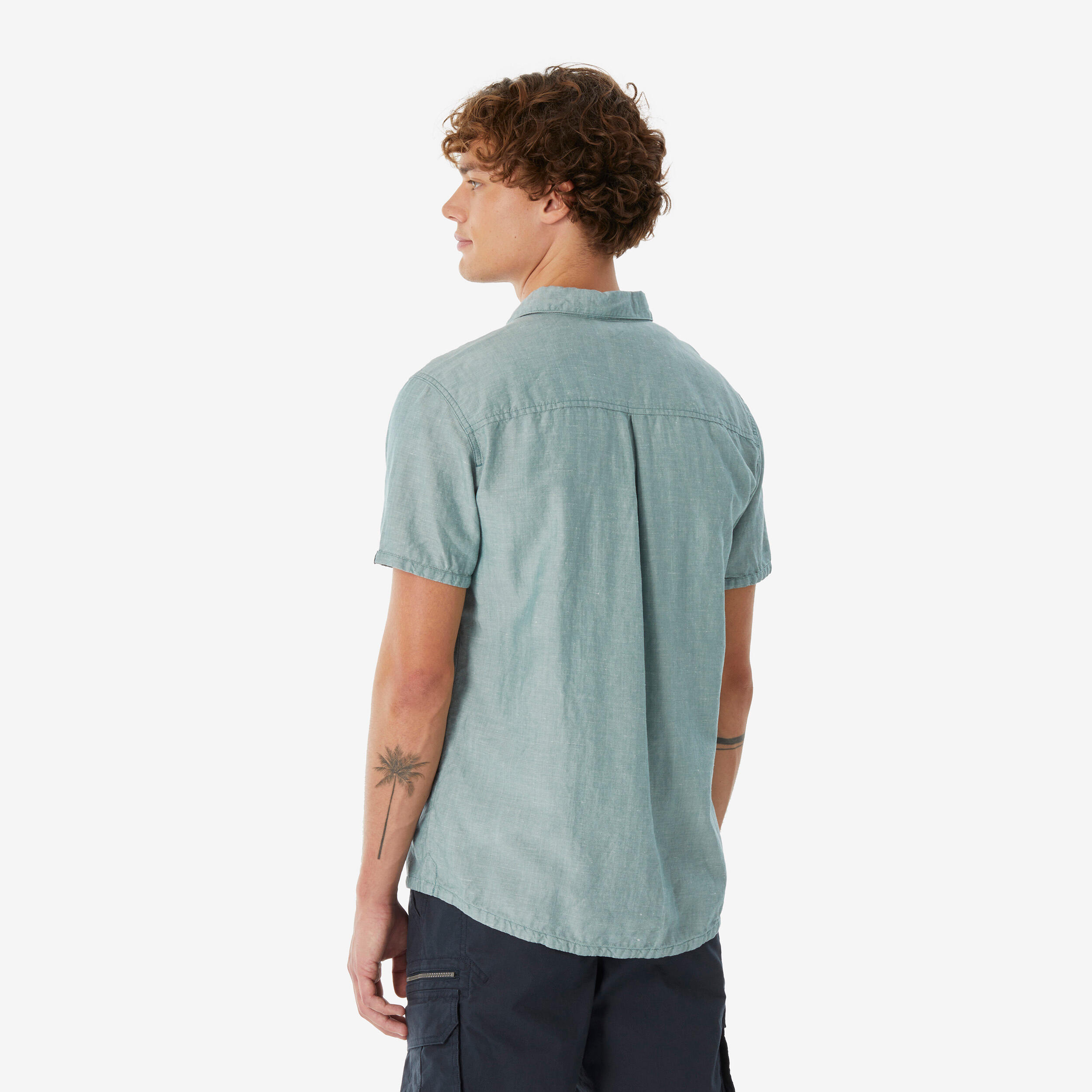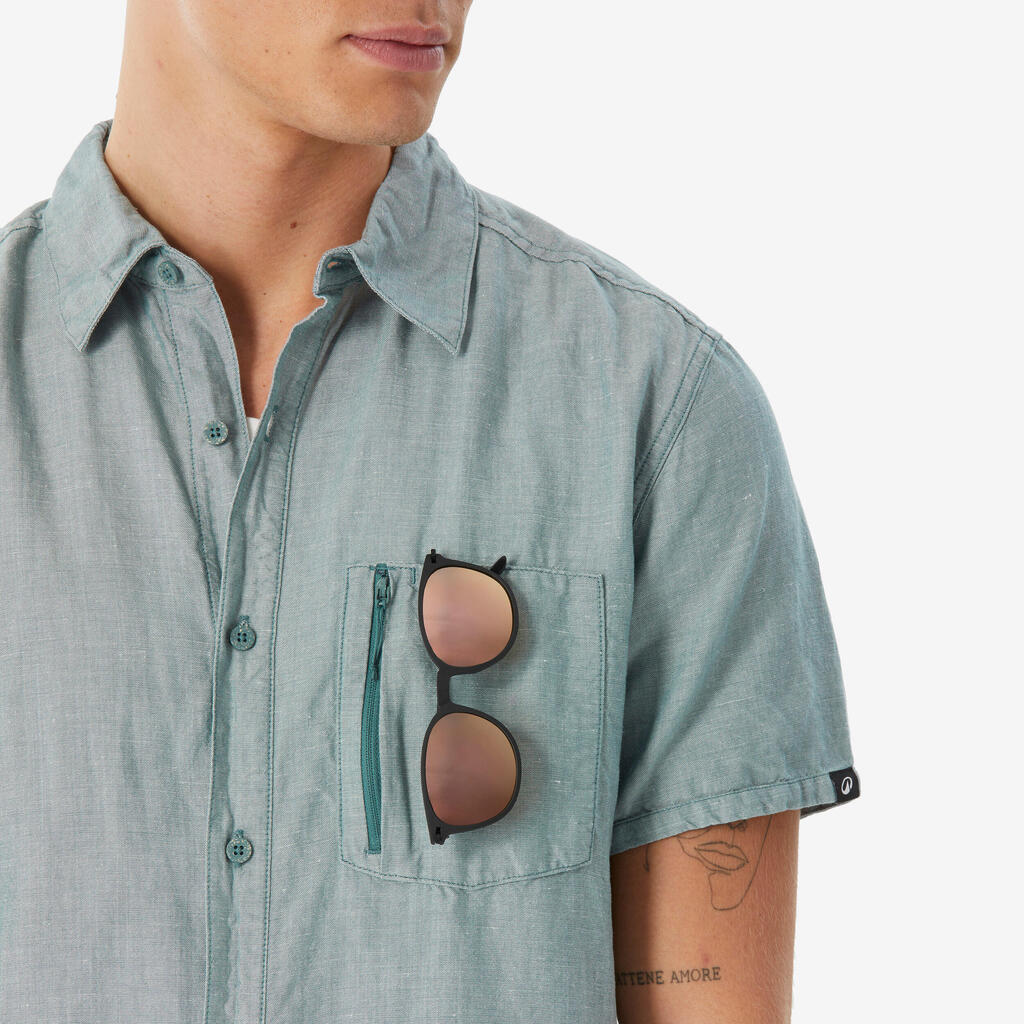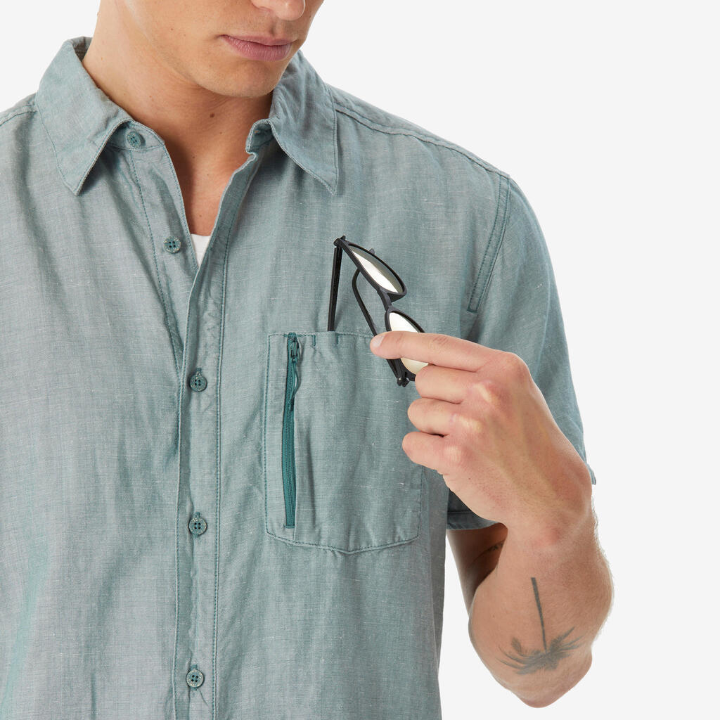 Men’s short-sleeved hiking shirt NH500 - green