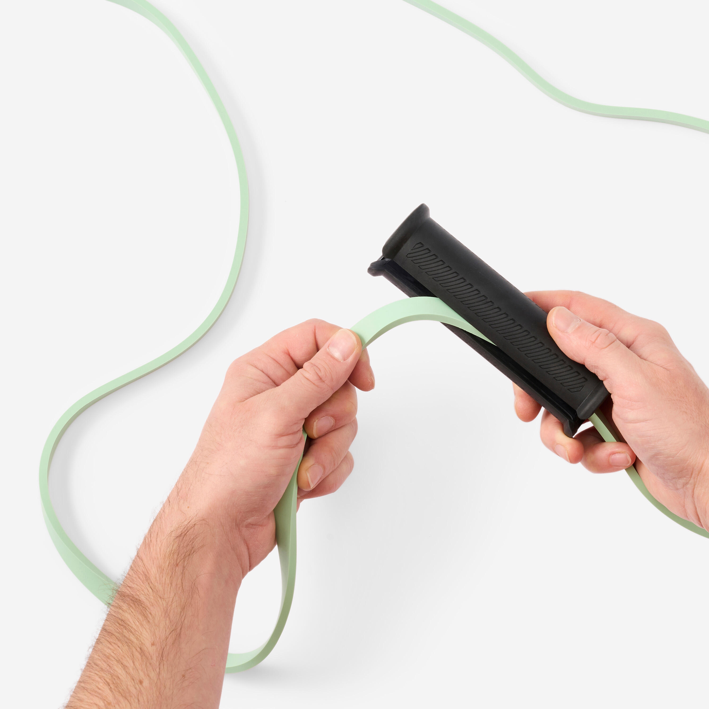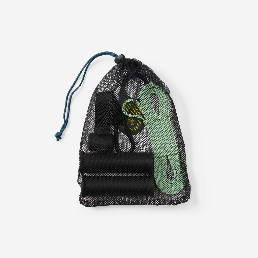 Because it contains everything you need for an all-round home workout! With more than 100 possible exercises, you'll work all of your muscle groups: arms, shoulders, back, legs and abs. The door anchor increases the possible exercises you can do, while the handles give you a comfortable grip and the bag makes it easy to carry everything. This compact kit can be upgraded as you get stronger (by replacing the resistance band, up to 45 kg).