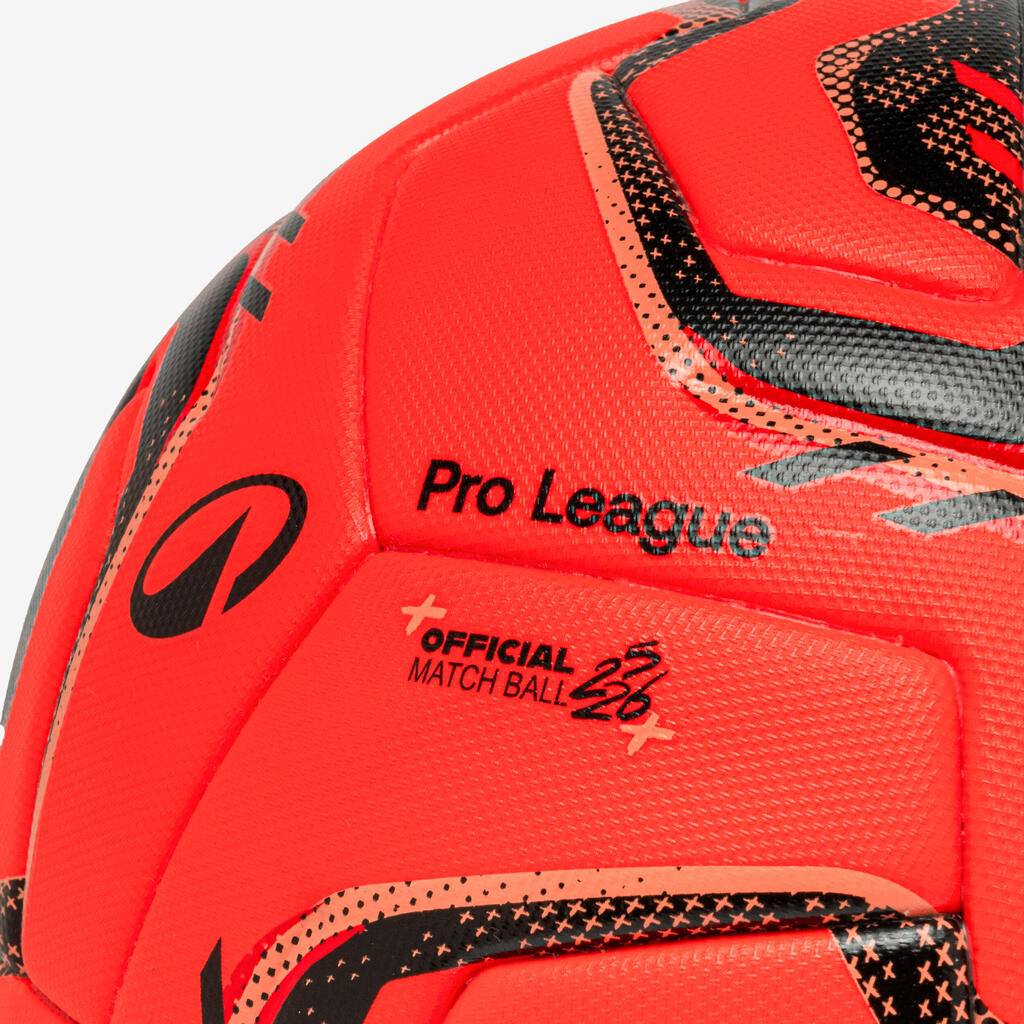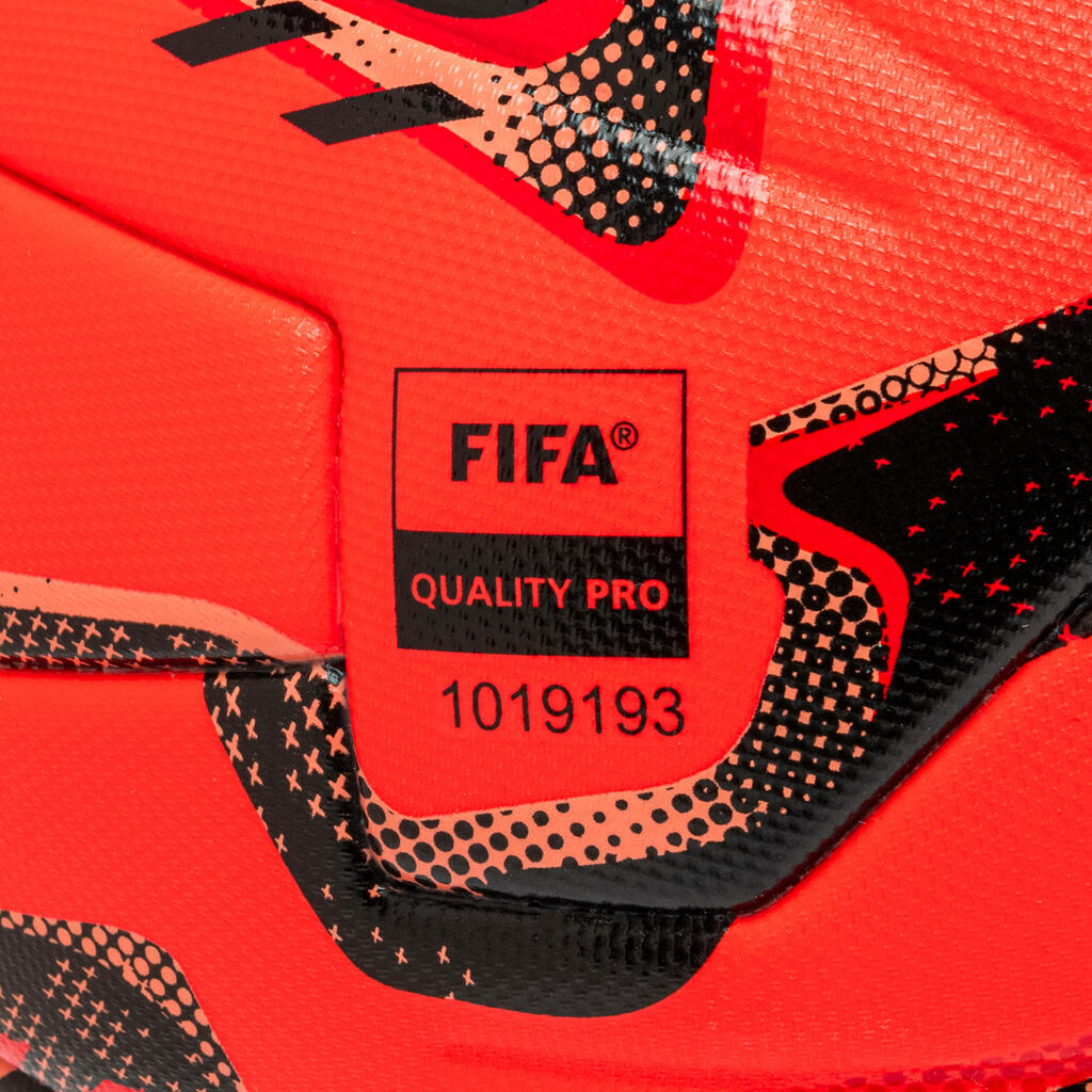This ball weighs between 420 g and 445 g in size 5, in line with FIFA QUALITY PRO criteria for professional footballs.
