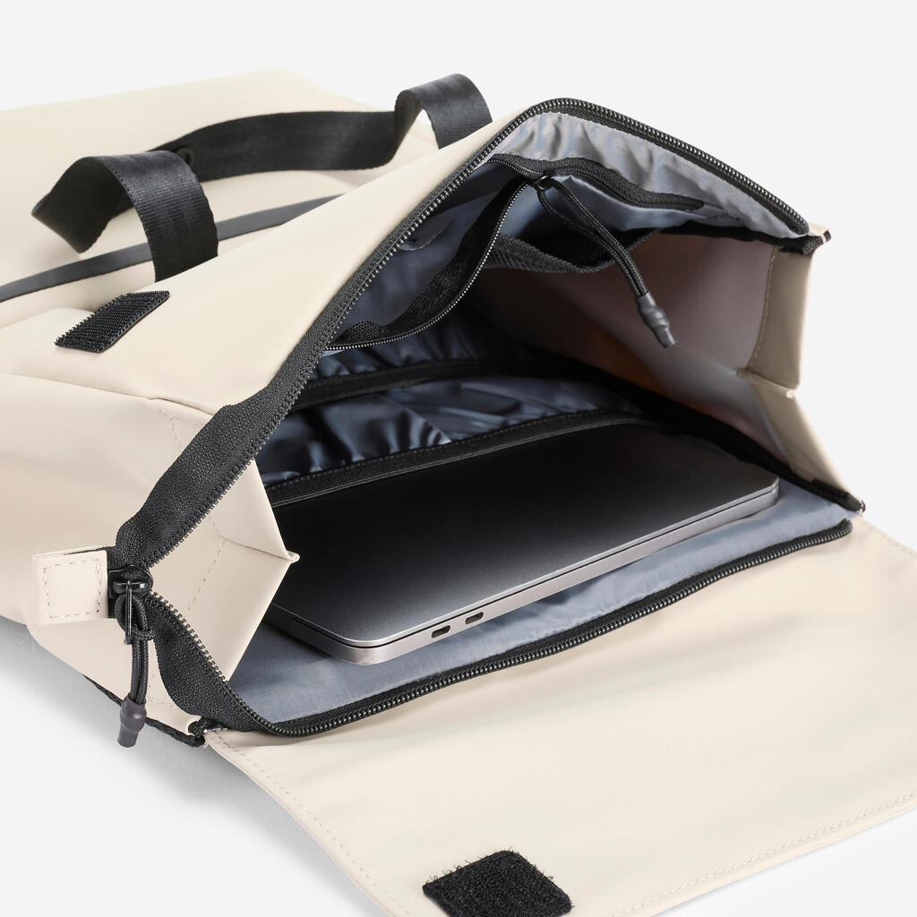 Small size, great efficiency. A compact, boxy 15L backpack with multiple compartments, including a laptop pocket, so everything is within reach. Its water-repellent fabric keeps your belongings dry.