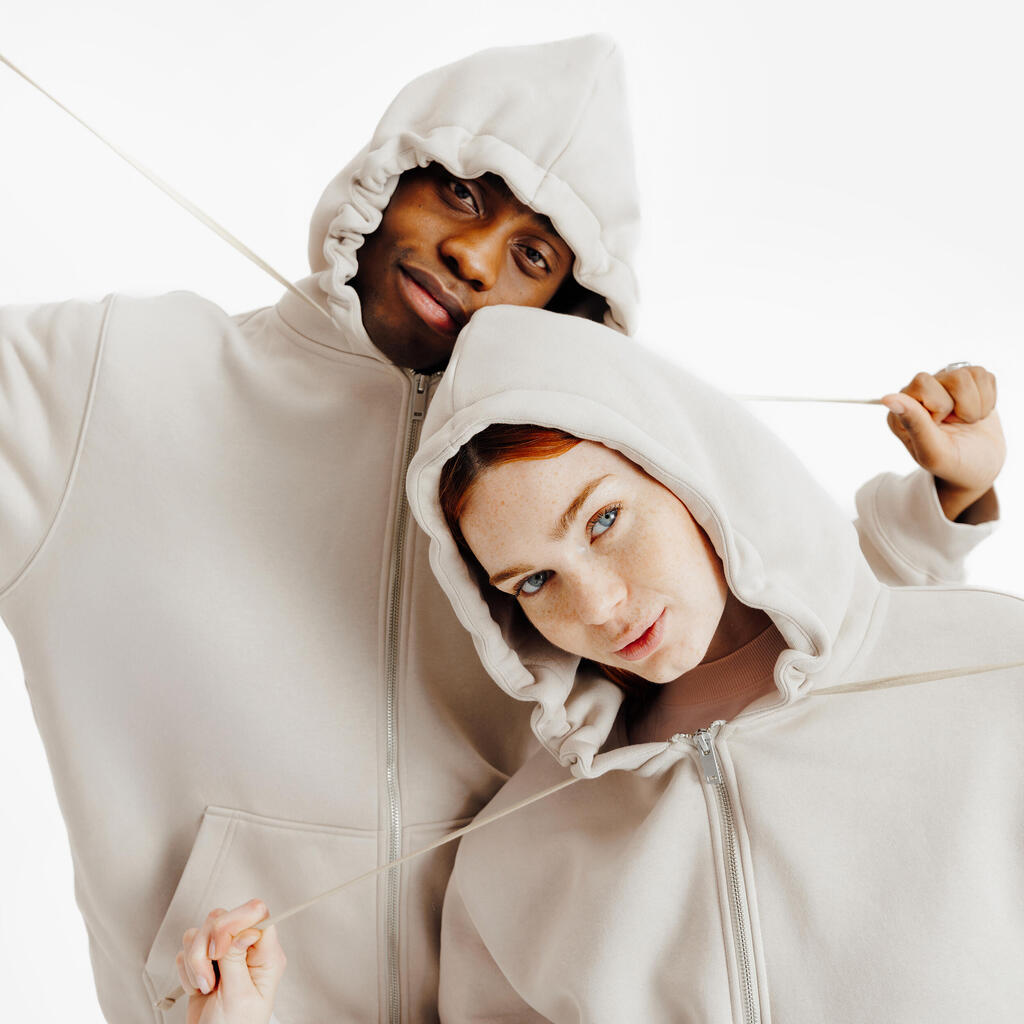 Open or closed, on a jean, with a skirt or some jogging bottoms, there's nothing more versatile in our collection than the zipped hoodie.Oversized, warm and very soft to boot.