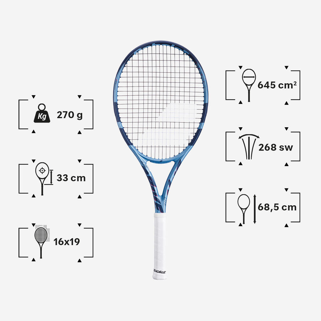 Head size: This is the surface area of the racket head size measured in squared centimetres. It has an impact on the racket's forgiveness and power. The larger the head size, the more powerful and forgiving it is, but the downside is less control. The smaller the head size, the greater the feeling of control, but you sacrifice some power and forgiveness.