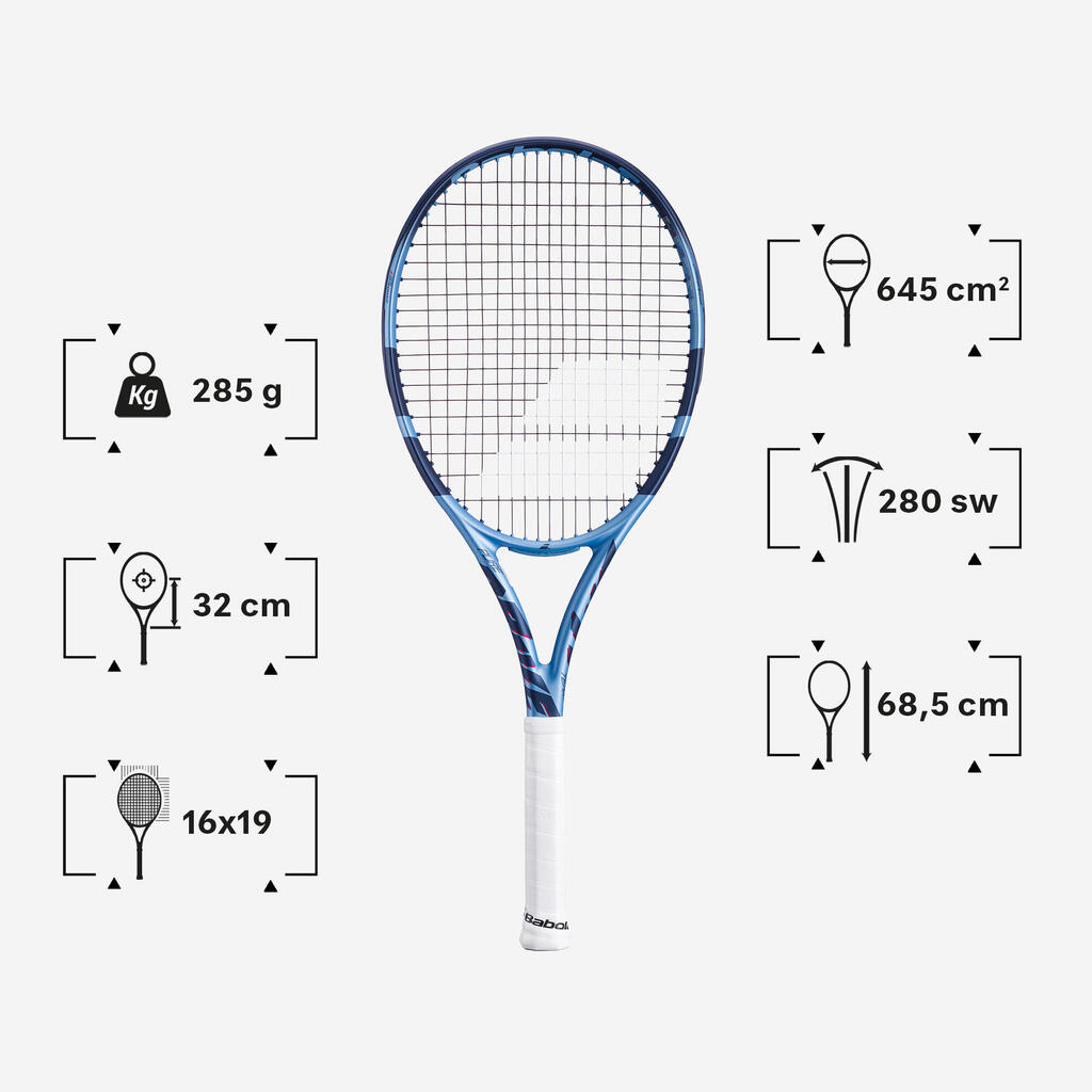 Head size: This is the surface area of the racket head size measured in squared centimetres. It has an impact on the racket's forgiveness and power. The larger the head size, the more powerful and forgiving it is, but the downside is less control. The smaller the head size, the greater the feeling of control, but you sacrifice some power and forgiveness.