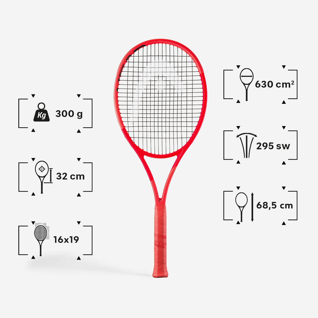Head size: This is the surface area of the racket head size measured in squared centimetres. It has an impact on the racket's forgiveness and power. The larger the head size, the more powerful and forgiving it is, but the downside is less control. The smaller the head size, the greater the feeling of control, but you sacrifice some power and forgiveness.
