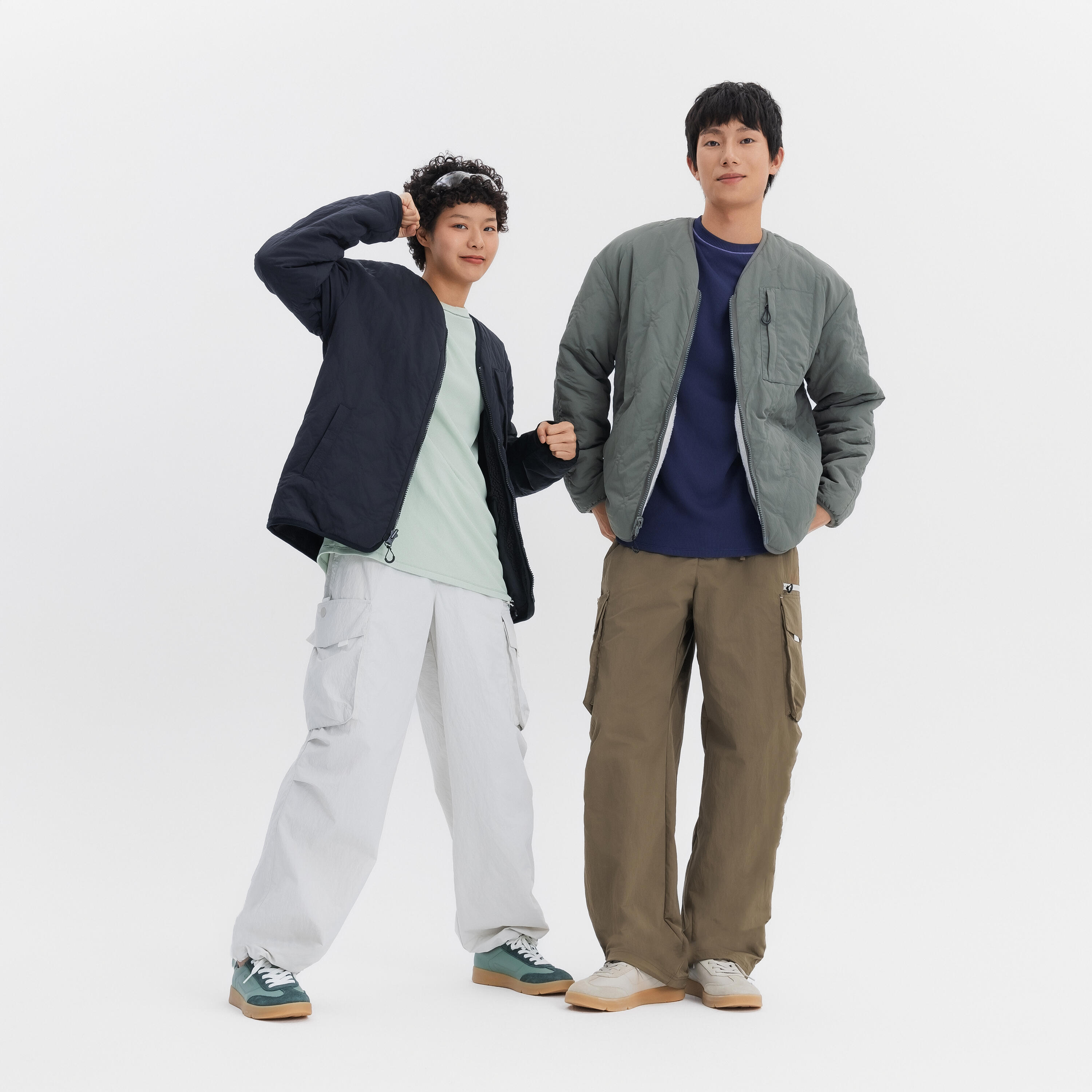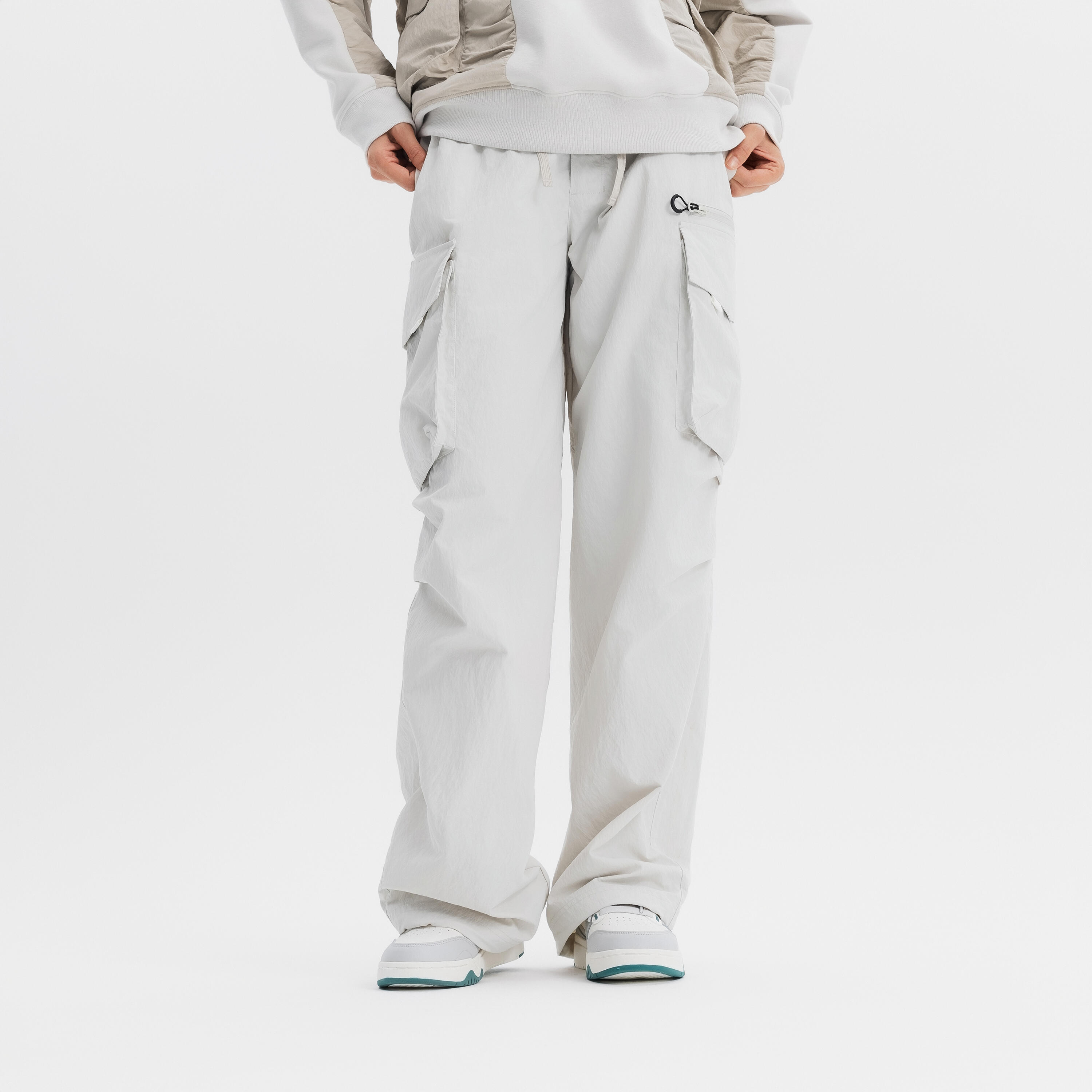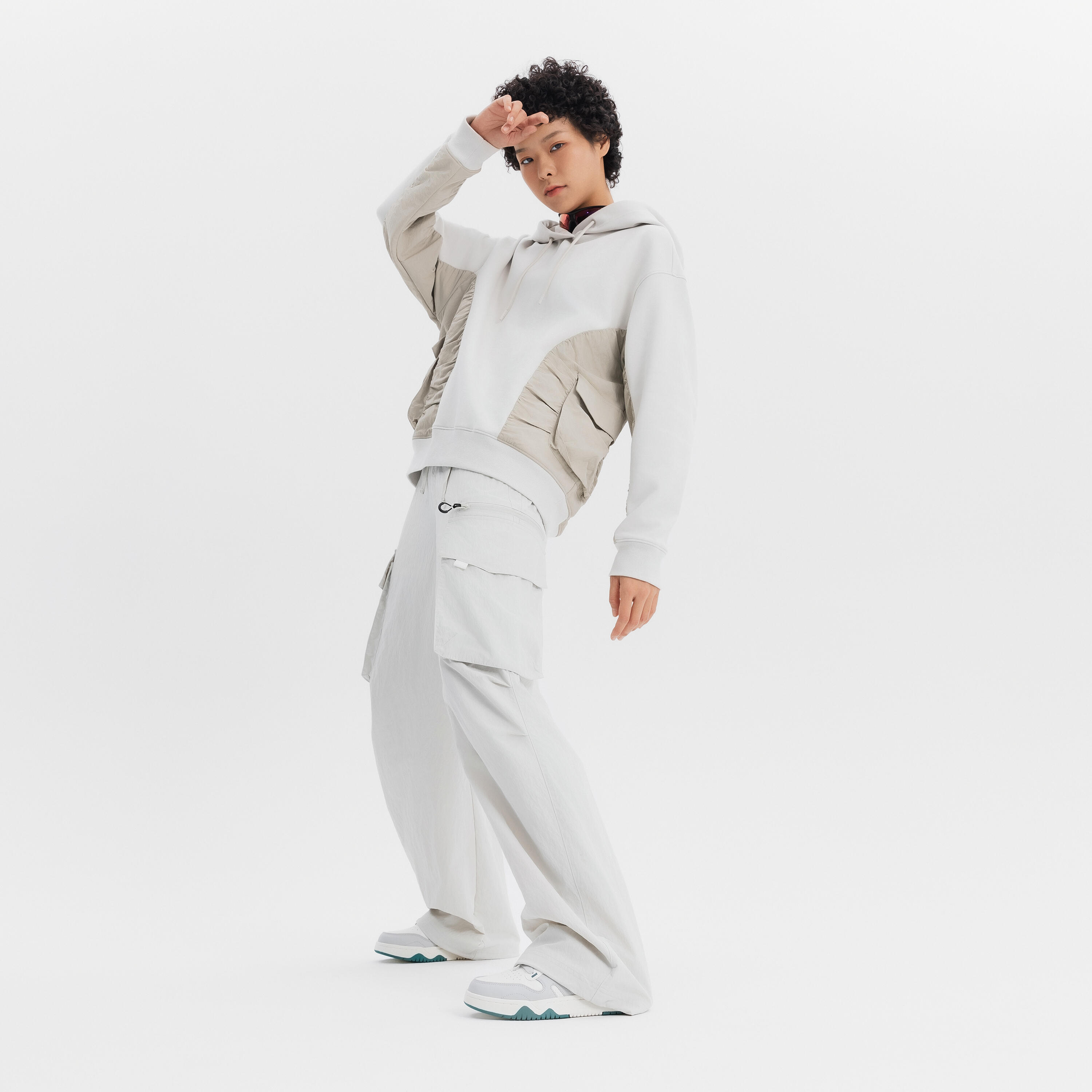 This oversize unisex pants feature an elastic waistband with an adjustable drawstring, versatile multi-pocket design, free-moving double pleat cutting, and an adjustable hem drawstring.