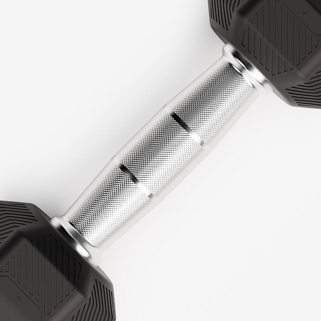 Your dumbbells will stay exactly where you put them! The 6-sided design keeps them stable after each exercise. The high-performance rubber coating provides all the essentials: maximum protection from impacts for your equipment and your floor, plus quieter workouts with no noise disturbance.