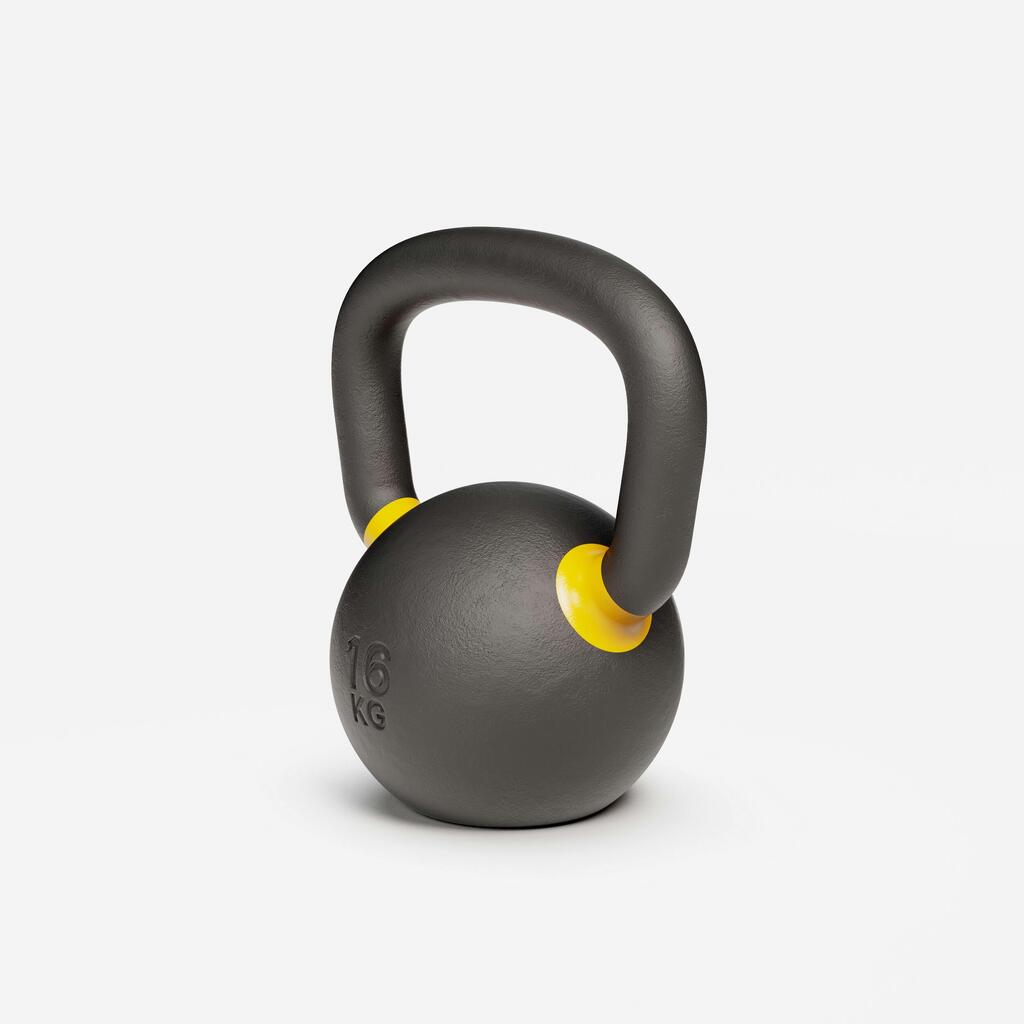 For controlled drops, pair your 16 kg kettlebell with our rubber floor mat (ref. 8651539). This surface absorbs impacts while protecting your training area and keeping things quiet for your neighbours.