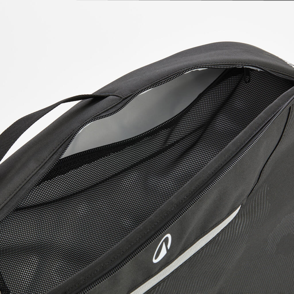 This racket sports bag can hold up to three tennis rackets (junior or adults). It has an inside zip mesh pocket, carry strap and handle.