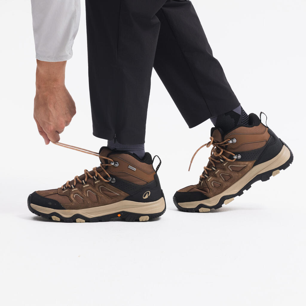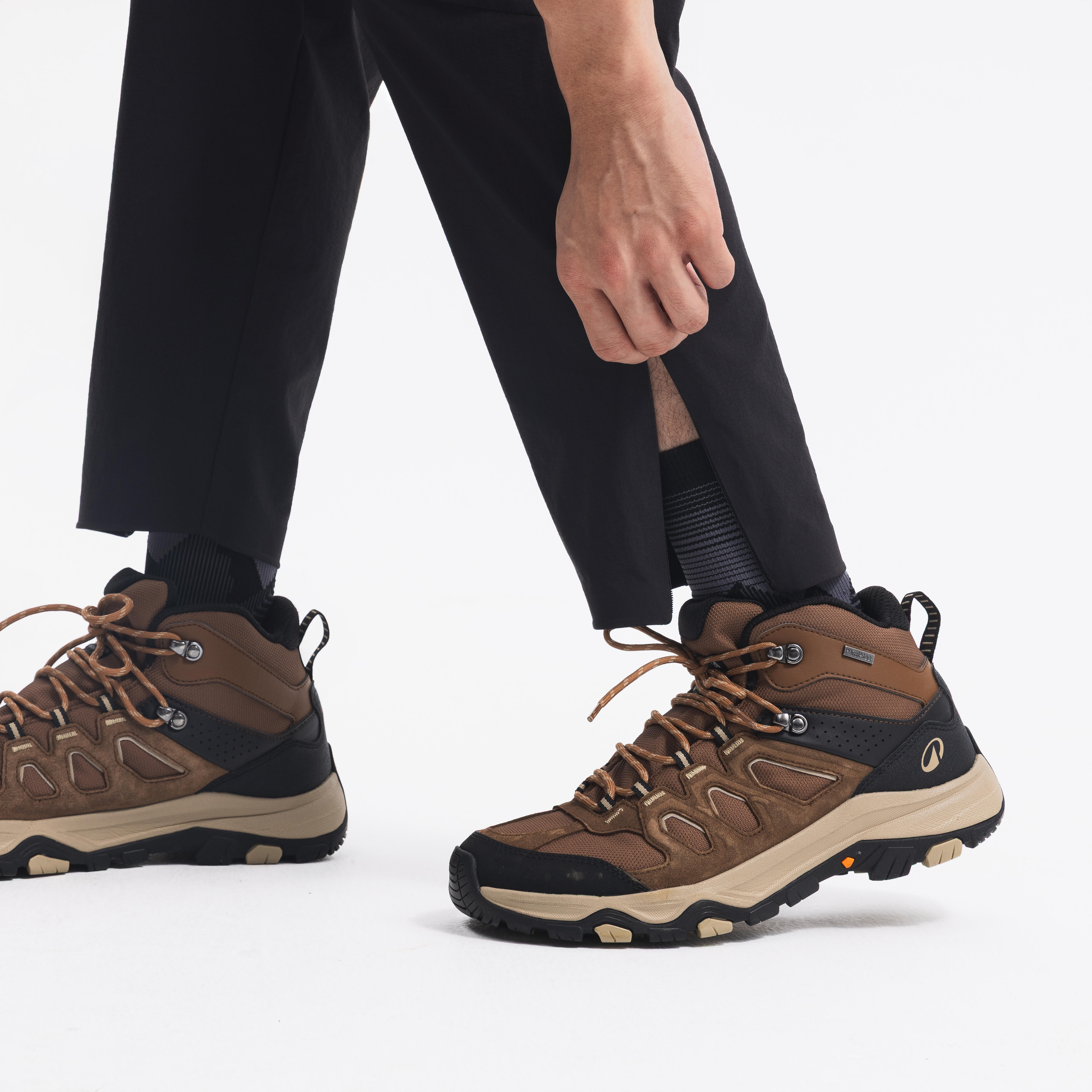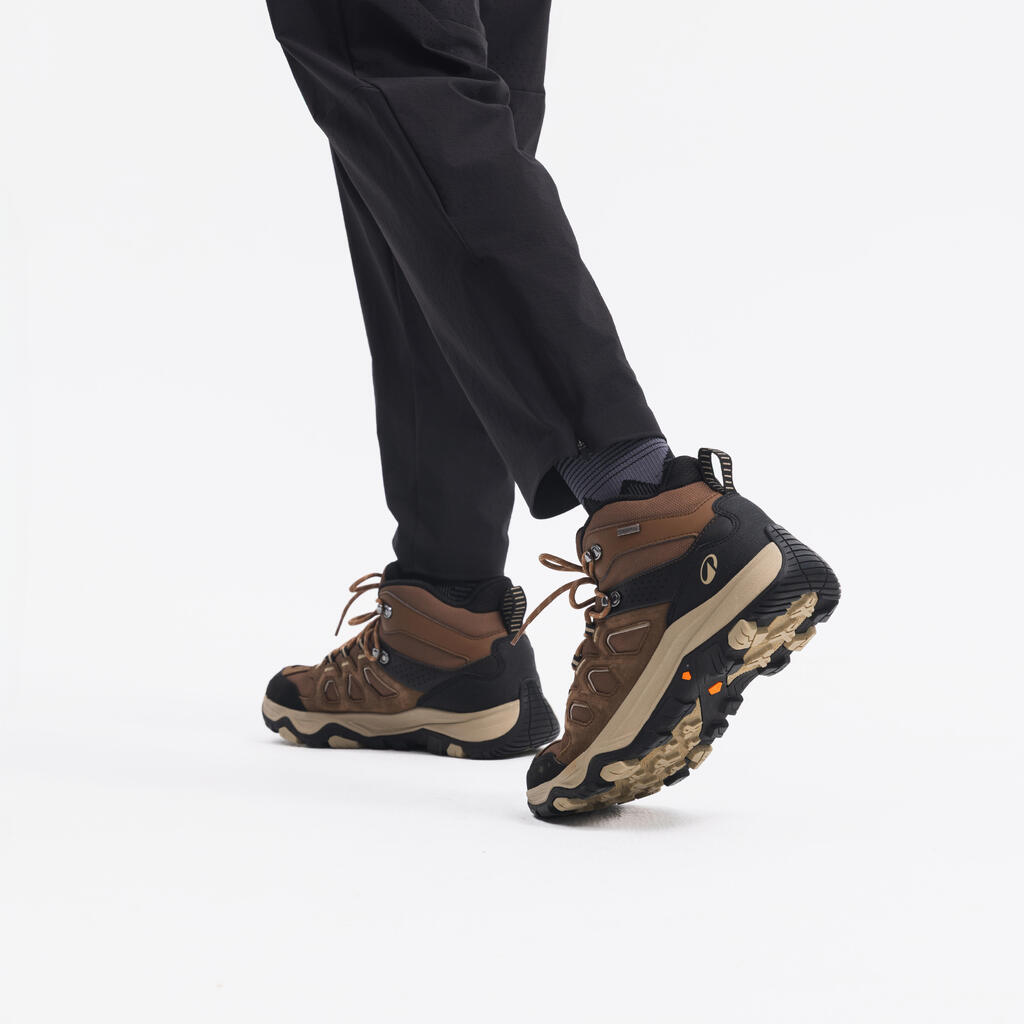Designed for uneven trails, these boots offer protection at the front with their rubber stone guard, at the back with their synthetic reinforcements, and they are reinforced by leather inserts in the most exposed areas. These elements make them more shock- and rub-resistant.