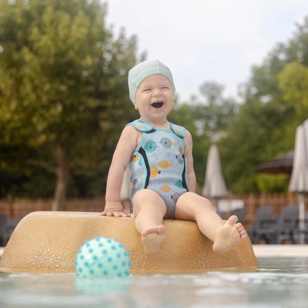 This 2 mm neoprene baby wetsuit is specially designed for cold-sensitive babies aged 6 months to 2 years who are discovering the water for the first time.