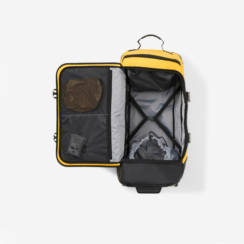 Don't worry about running out of space – it's got plenty of room. With a capacity of 85 L, it's perfect for storing rackets, trainers, ski suits and mats. When you think big, you need space for it all. But be careful – don’t fill it any old way. A place, a compartment, for everything.You have 7 available, including one for shoes or dirty laundry. A competition-level suitcase for athletes, but also for city dwellers.