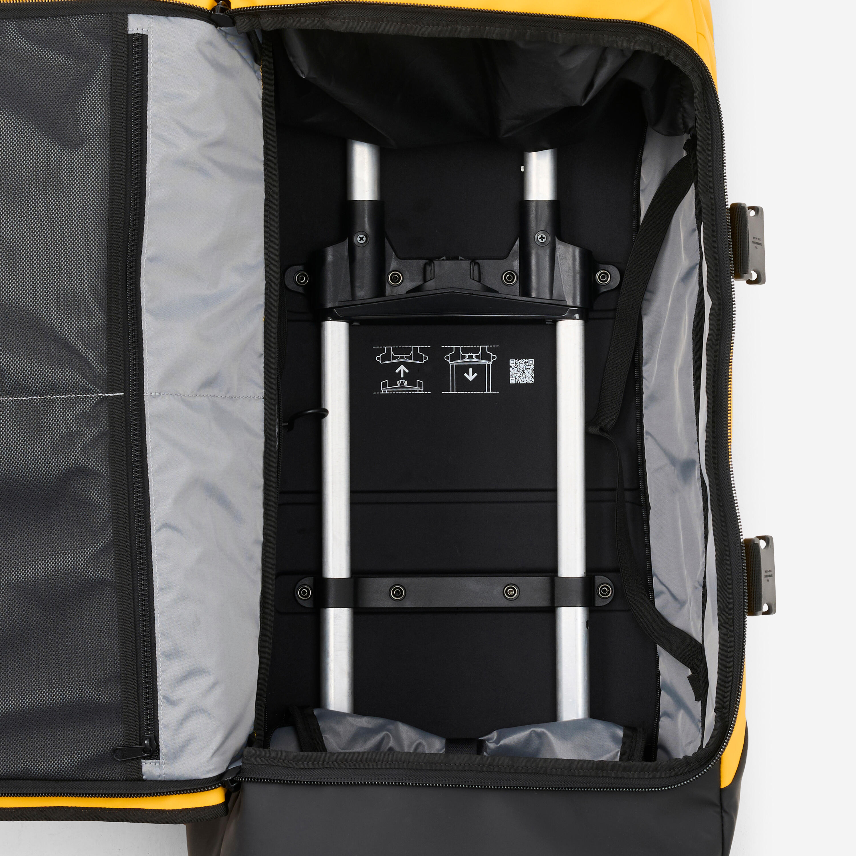 Carrying heavy loads, on all kinds of terrain? No problem at all! Switch to agile mode, on sturdy, wide scooter-style wheels. Need to climb metro steps or load it onto an airport conveyor belt?No worries! Switch back to hand-carrying with an adjustable handle on both the top and side – choose your mode, suitcase or sports bag. Need a break?Lay it on the ground without a second thought:its ultra-stable, solid bottom keeps it steady, whether you're moving or resting.