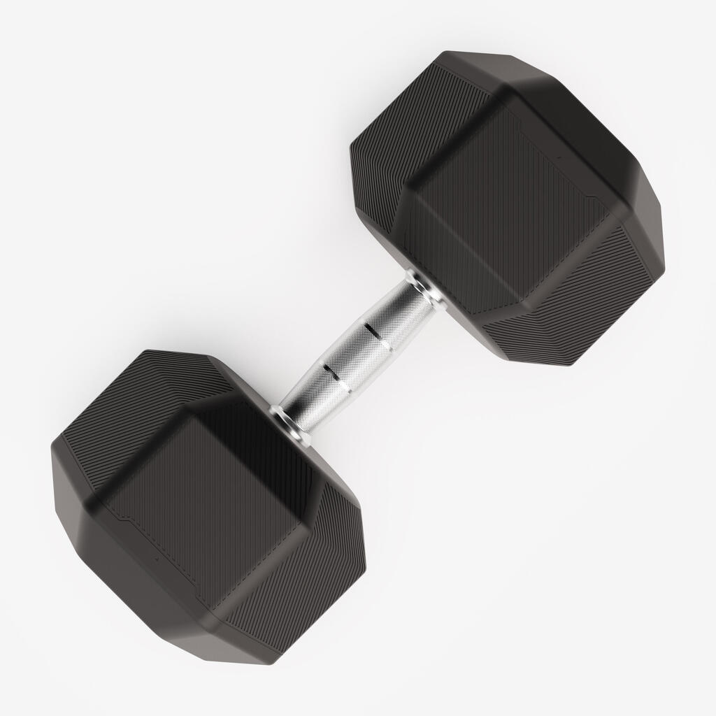 No more dumbbells rolling around! The hexagonal shape ensures perfect stability after every set. Your dumbbells stay exactly where you put them. The high-performance rubber coating effectively protects your equipment and your floor from repeated impacts. A welcome bonus: it also absorbs impact noise to keep your surroundings quiet.