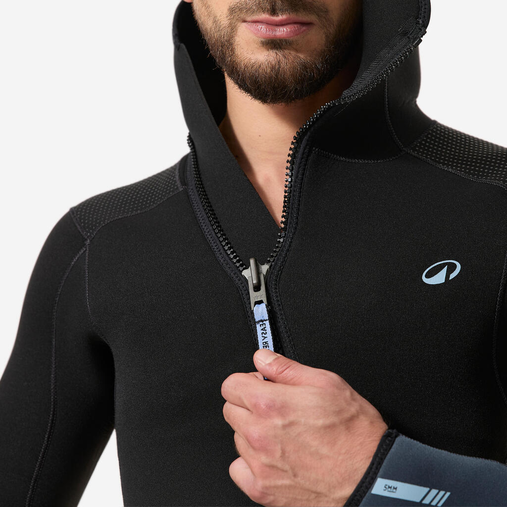 For maximum warmth underwater, this wetsuit uses the GBS (Glued and Blind Stitched) assembly, a process that makes the seams watertight. The neoprene is first glued to join the panels together and create an initial barrier against the water. A seam is then added to reinforce the strength of the assembly. The trick? The needle never penetrates the entire thickness of the neoprene. This technique prevents cold water from seeping through the seams.