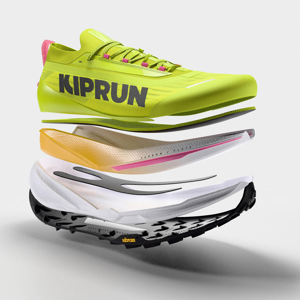 Revolutionary on the trails: The Kipsummit Race is KIPRUN's first trail running Supershoe.With its patented carbon plate, SCF foam and Vibram sole, it'll take you to peak performance.