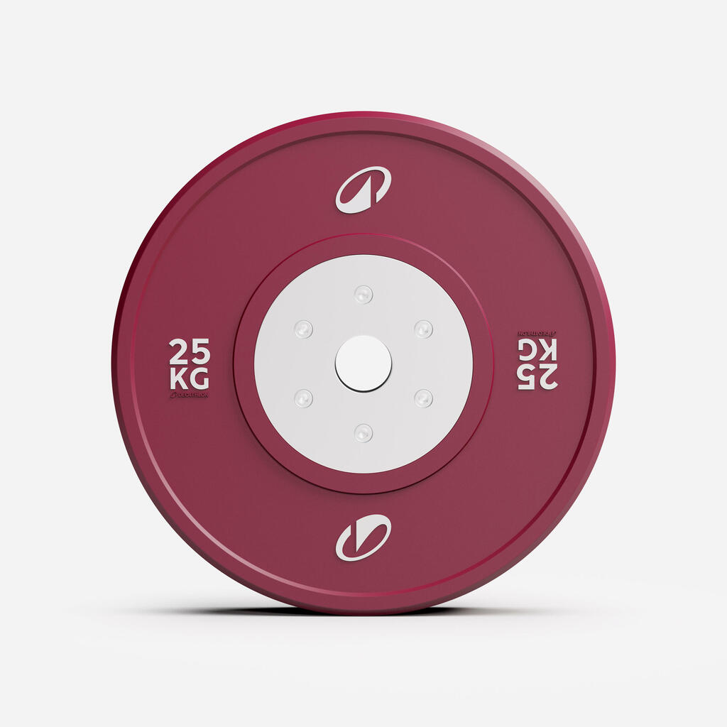 This 25 kg plate has an exceptional tolerance of ±10 g to meet international competition standards. It's a level of technical precision that automatically validates its use in approved competitions.