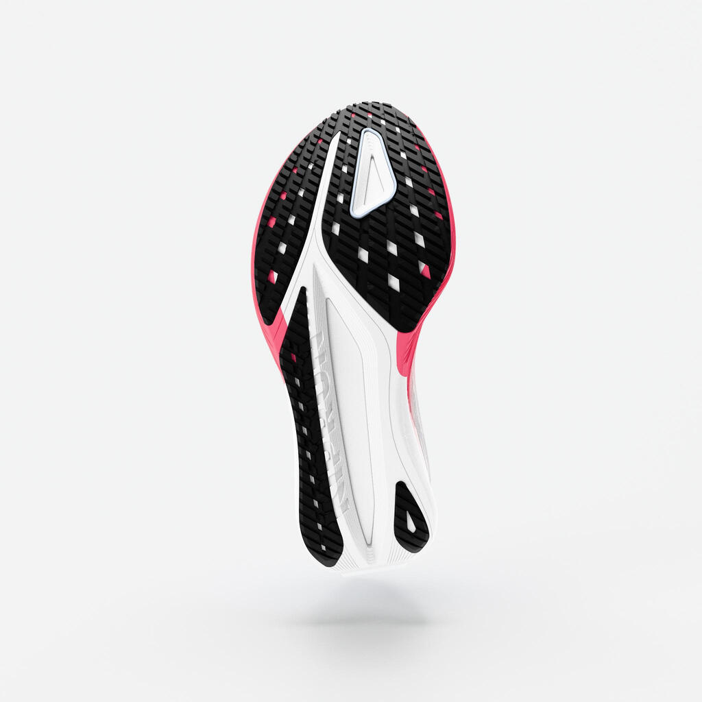 The sole of the Kipstorm Tempo is based on an ingenious dual-density system.It uses fastech+ foam, renowned for its responsive shock absorption, to optimise propulsion during the stride.This dynamic core is supplemented by a layer of ultra-light CMEVA that ensures running economy and stability, creating the ideal balance between speed and long-distance comfort for your tempo sessions.
