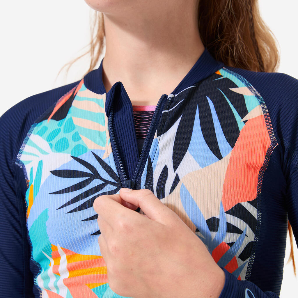 This UV-resistant top has a drawstring at the hips. This lets you tighten the top so that it stays firmly in place. It has also been designed so that the drawstring of your boardshorts can be attached to it to stop the top from riding up while you surf.