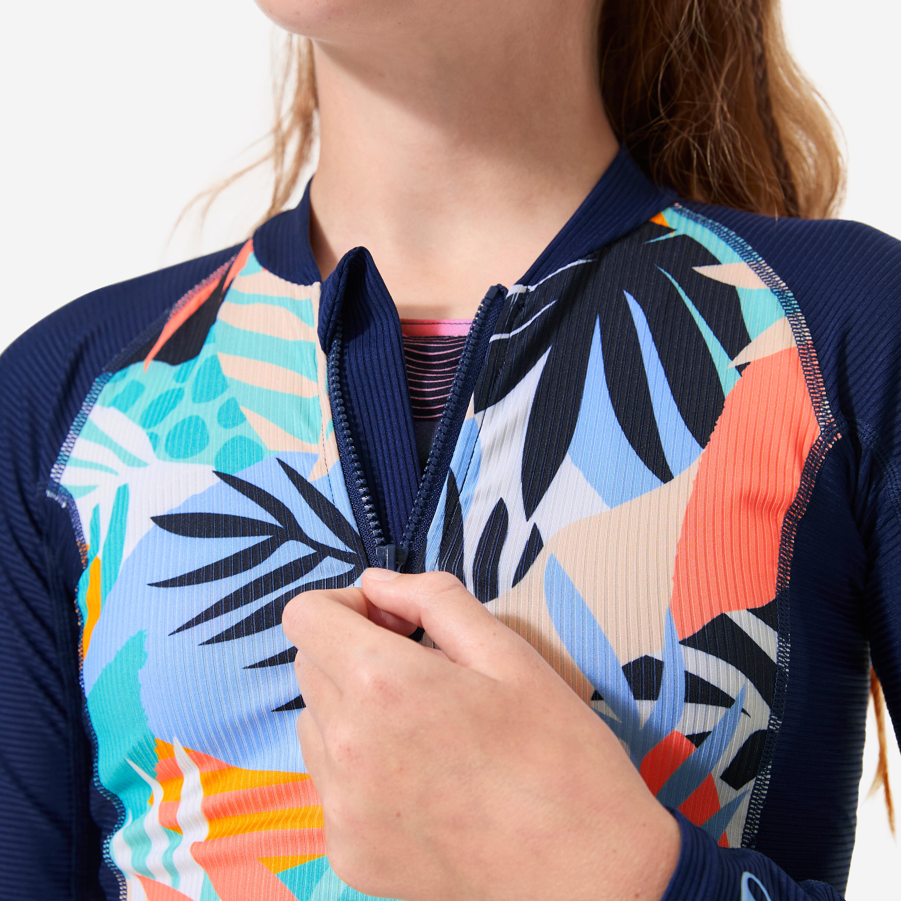 The fabric of this UV-resistant product blocks at least 98% of UVB radiation and 95% of UVA (UPF 50+). This guarantees effective protection from the sun. It can be used both in and out of the water, for water or nautical sports. The density of the textile fibres filters out UV rays, meaning that this protection lasts over time, even after washing.