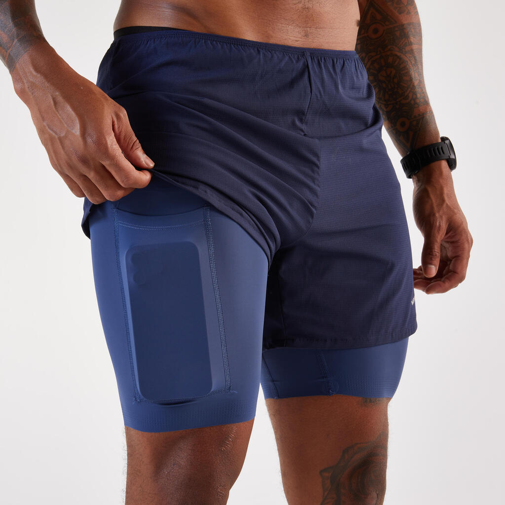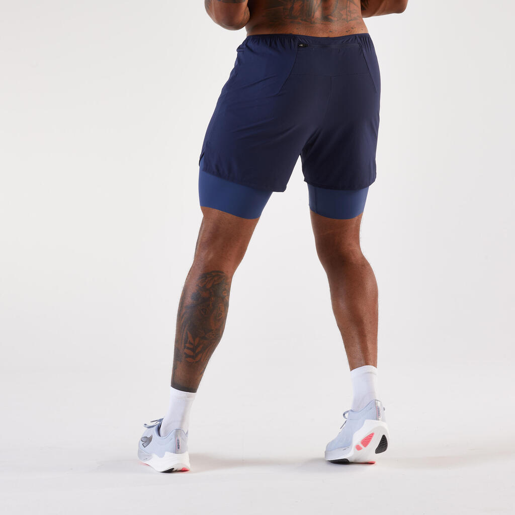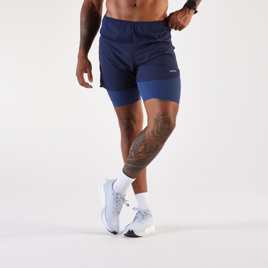Men's 2 in 1 running shorts, Kiprun Run 500 Comfort navy blue
