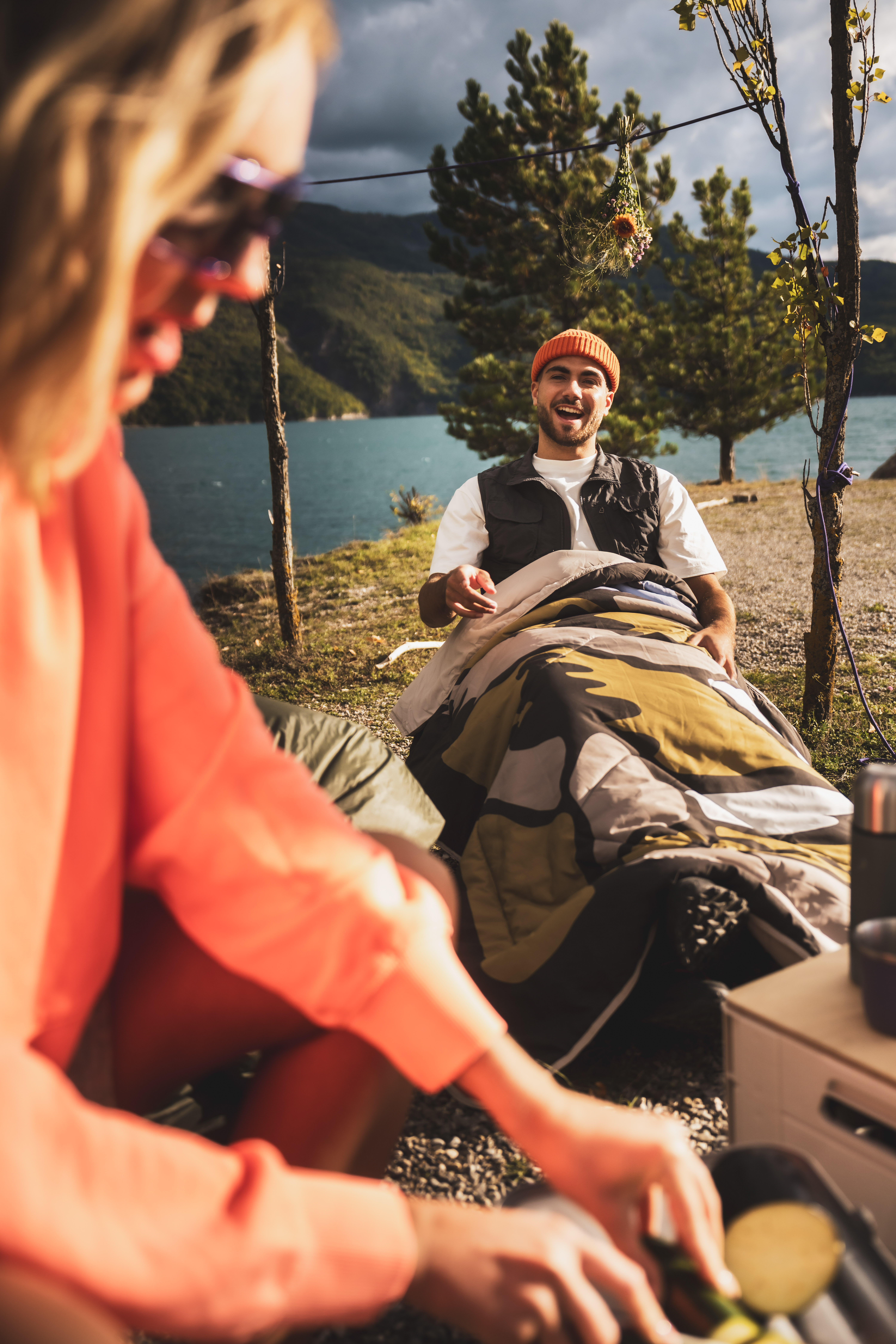Wrap yourself in your blanket on chilly evenings when out camping, or at home. Multi-use, it gives you warmth and comfort.