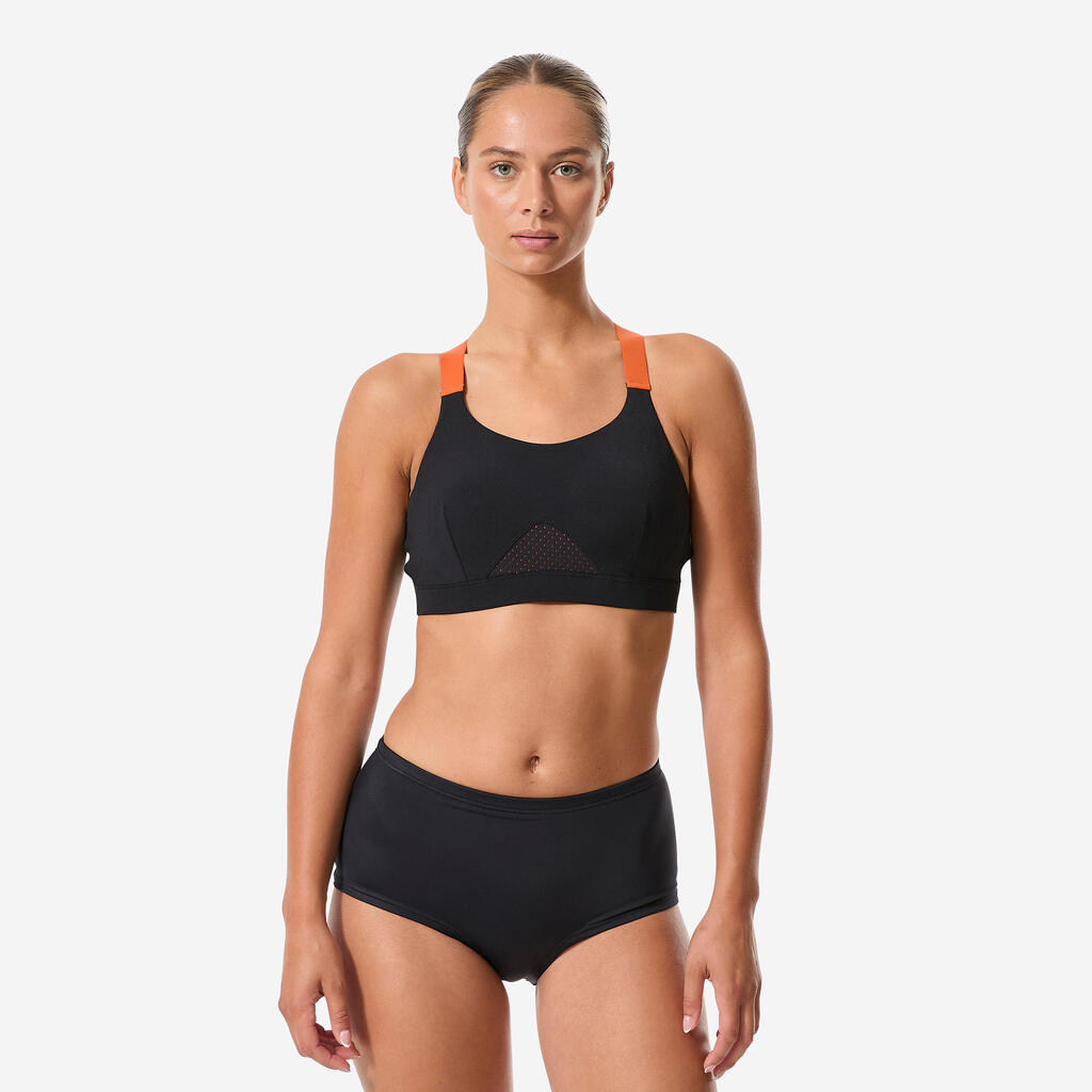 During a session, your breasts will move and bounce and can weigh up to 5 times their original weight. A swimsuit with a built-in bra helps protect your bust from repeated impacts. We have 3 levels of support to choose from, depending on the intensity of your sporting activity.