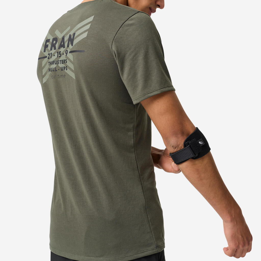 It is recommended to wear this strap to apply pressure on the elbow area and the forearm Easy to put on and tighten, its soft material and shape will guarantee optimal comfort.The tightening strap adjust the support and enables you to position it properly.Perfect for all your sports activities, and even more so when they put strain on your elbows:racquet sports, basketball, volleyball, handball, etc.Suitable for the left or right elbow.