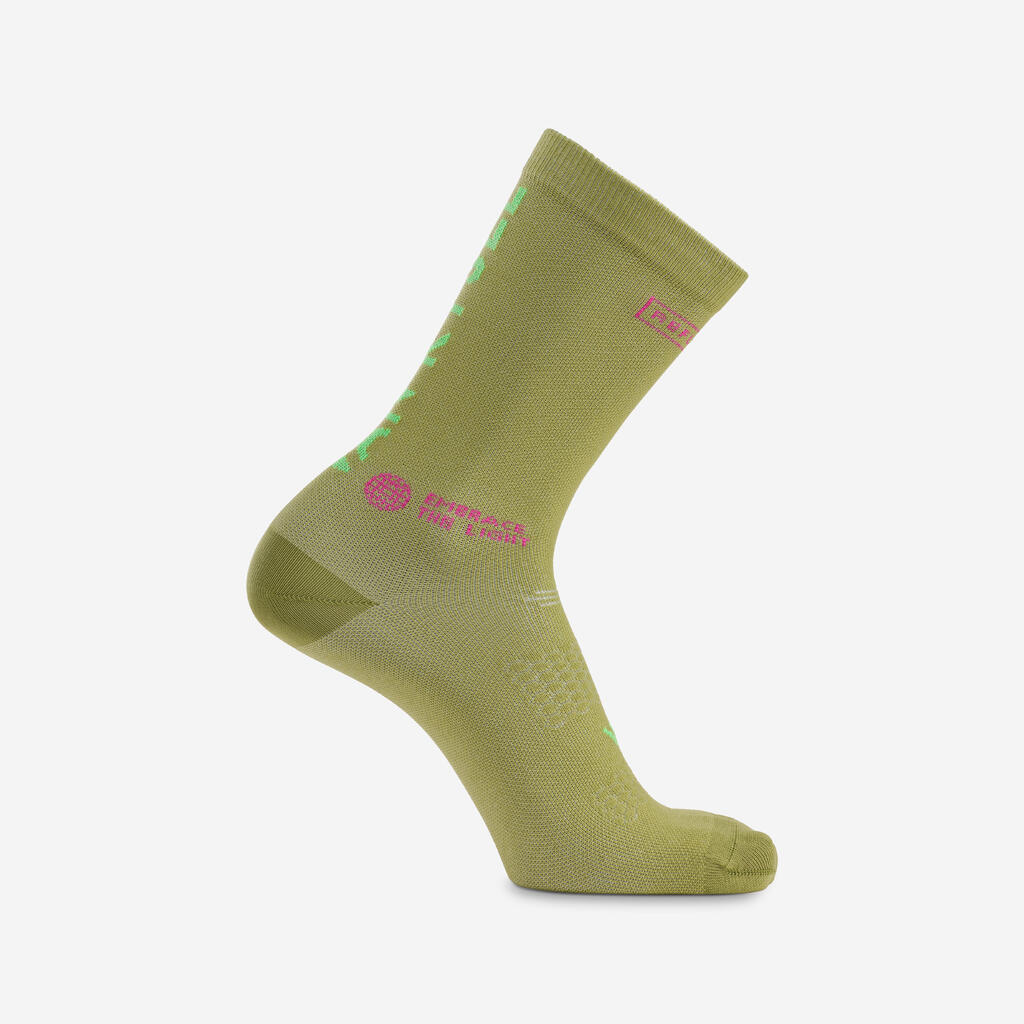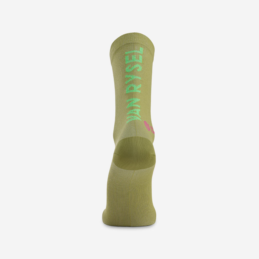 The existence of high-level cycling enabled us to develop high-quality technical socks that go up to the base of the calf.
