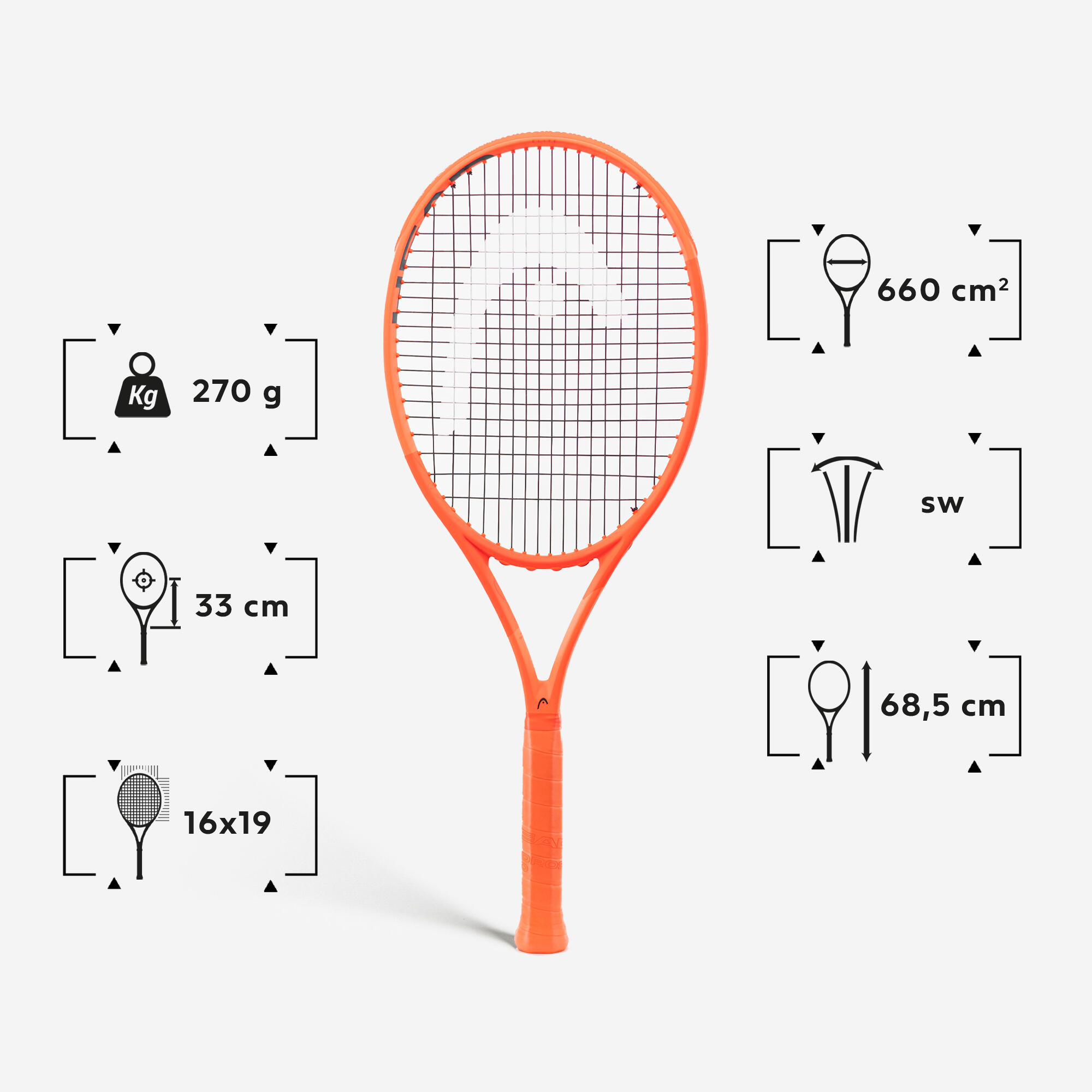 Head size: This is the surface area of the racket head size measured in squared centimetres. It has an impact on the racket's forgiveness and power. The larger the head size, the more powerful and forgiving it is, but the downside is less control. The smaller the head size, the greater the feeling of control, but you sacrifice some power and forgiveness.