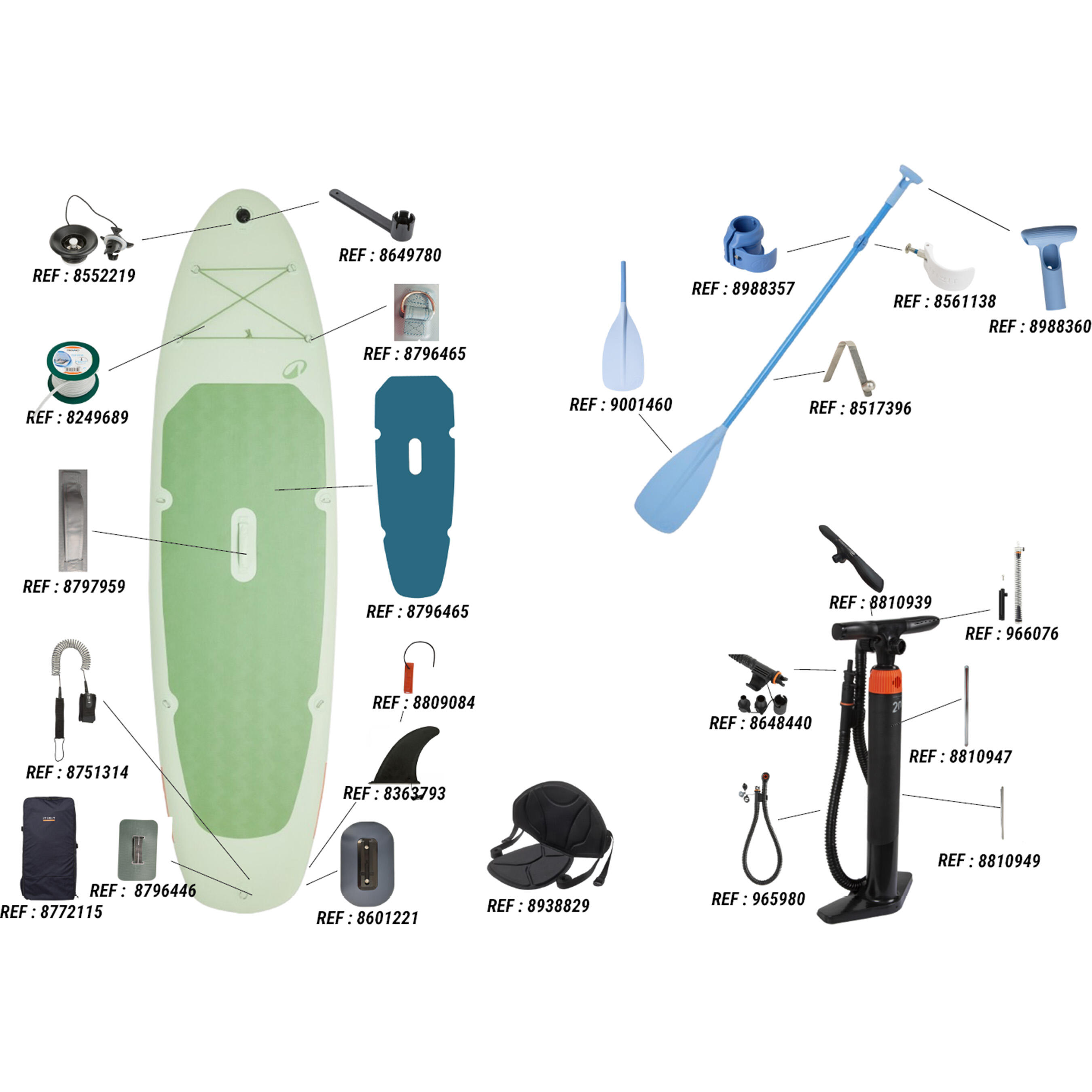 We offer a stand-up paddleboard repair kit (ref. 8512384) for easily fixing small, visible leaks.