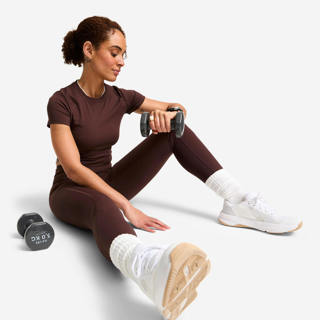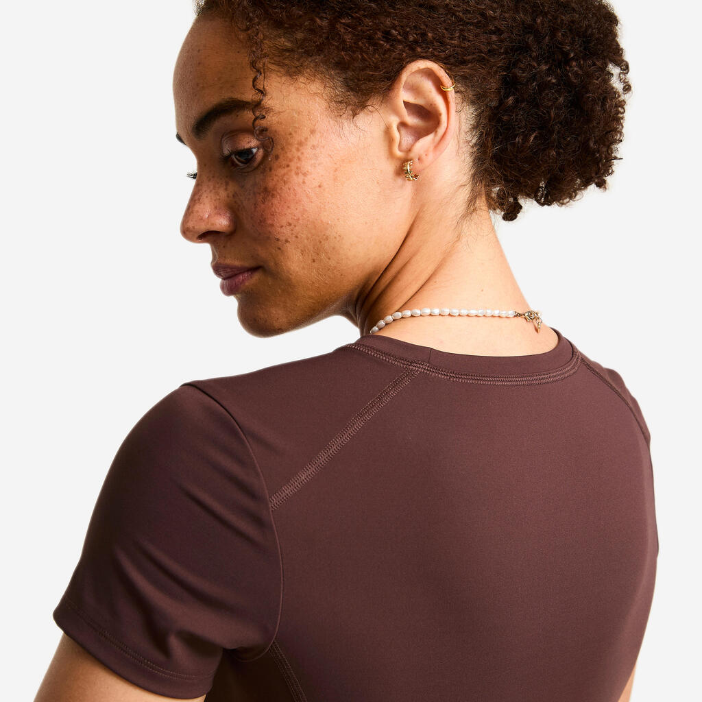 The fabric of this T-shirt combines two essential features. Its stretch fabric allows it to hug your curves naturally while following your movements. Squats, burpees, press-ups: the fabric adjusts without ever restricting you. At the same time, it quickly wicks away sweat generated as you work out, to keep you feeling fresh throughout your session.