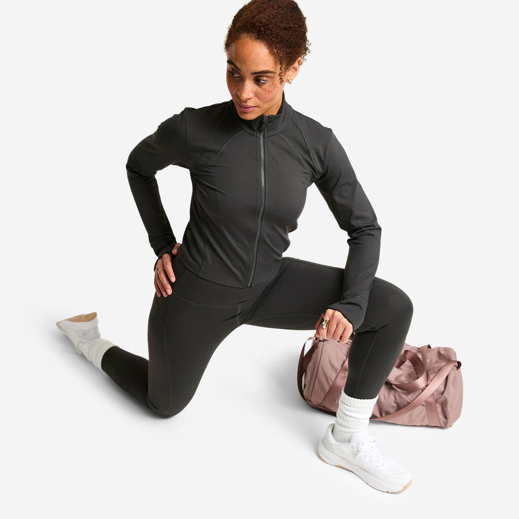 This fitted jacket wicks away perspiration and flatters your figure with its feminine mesh cut-outs.