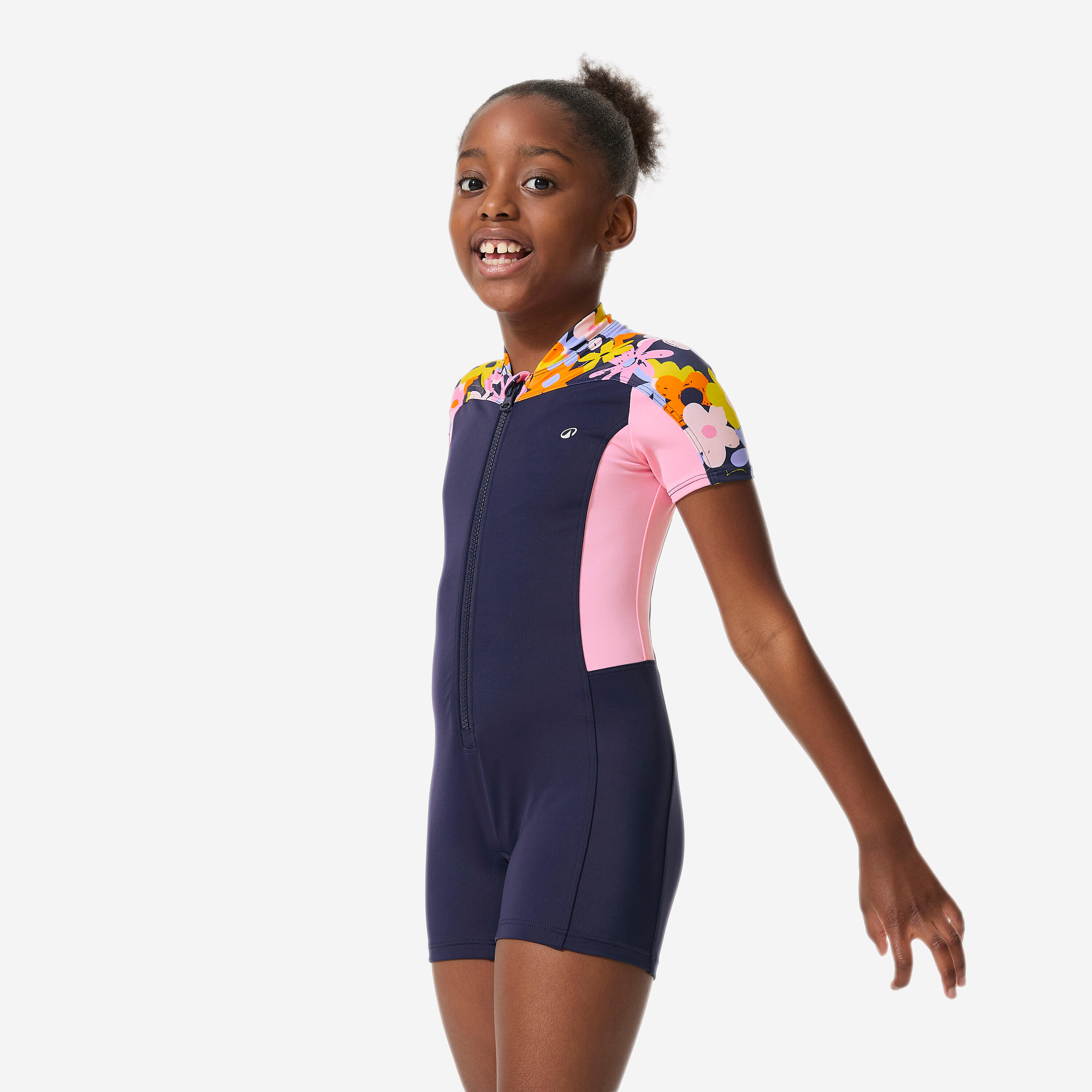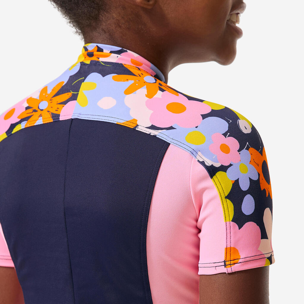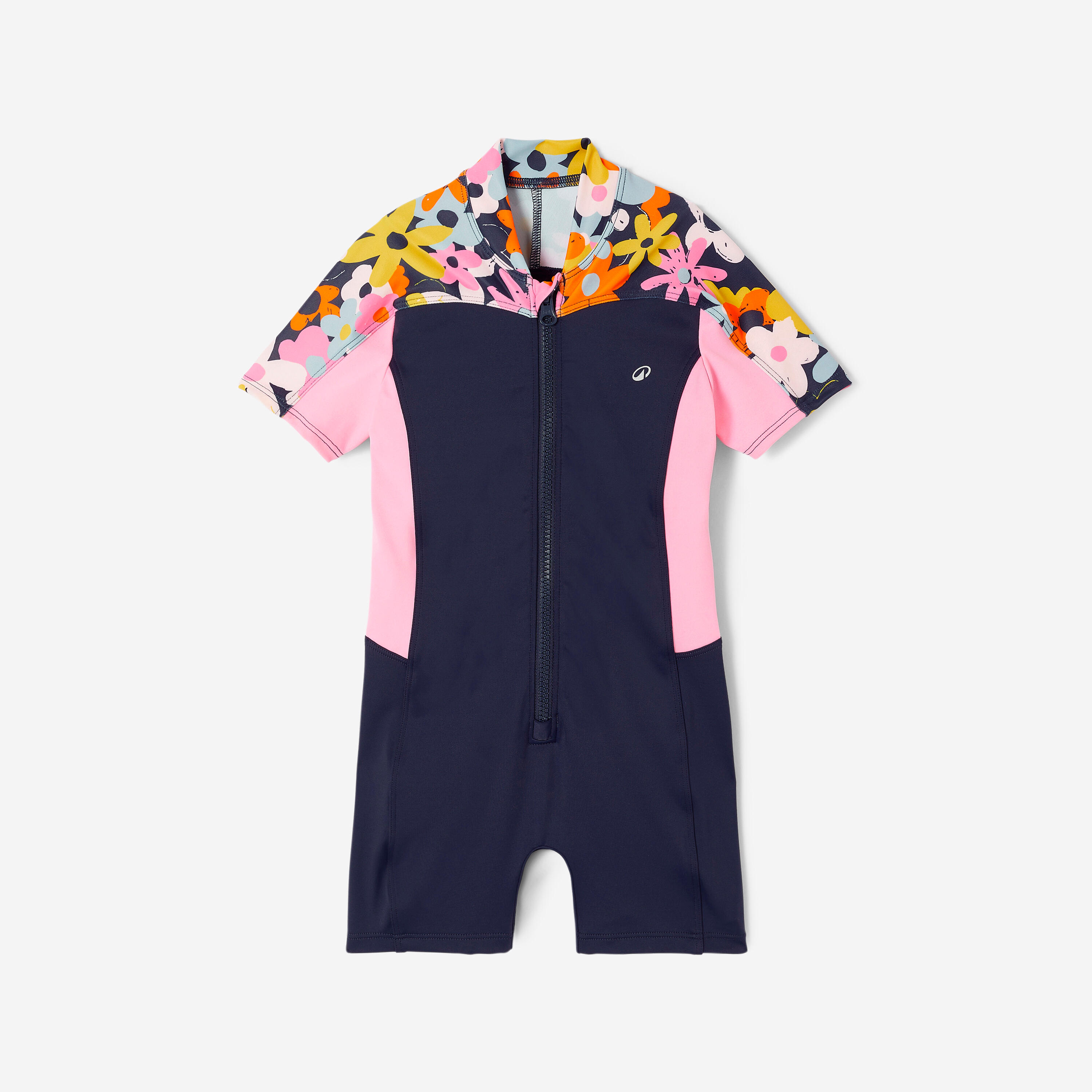 A short-sleeved shorty-style full-body suit made from swimsuit fabric: the ideal combo to kit your kid out so they can have fun in the water!