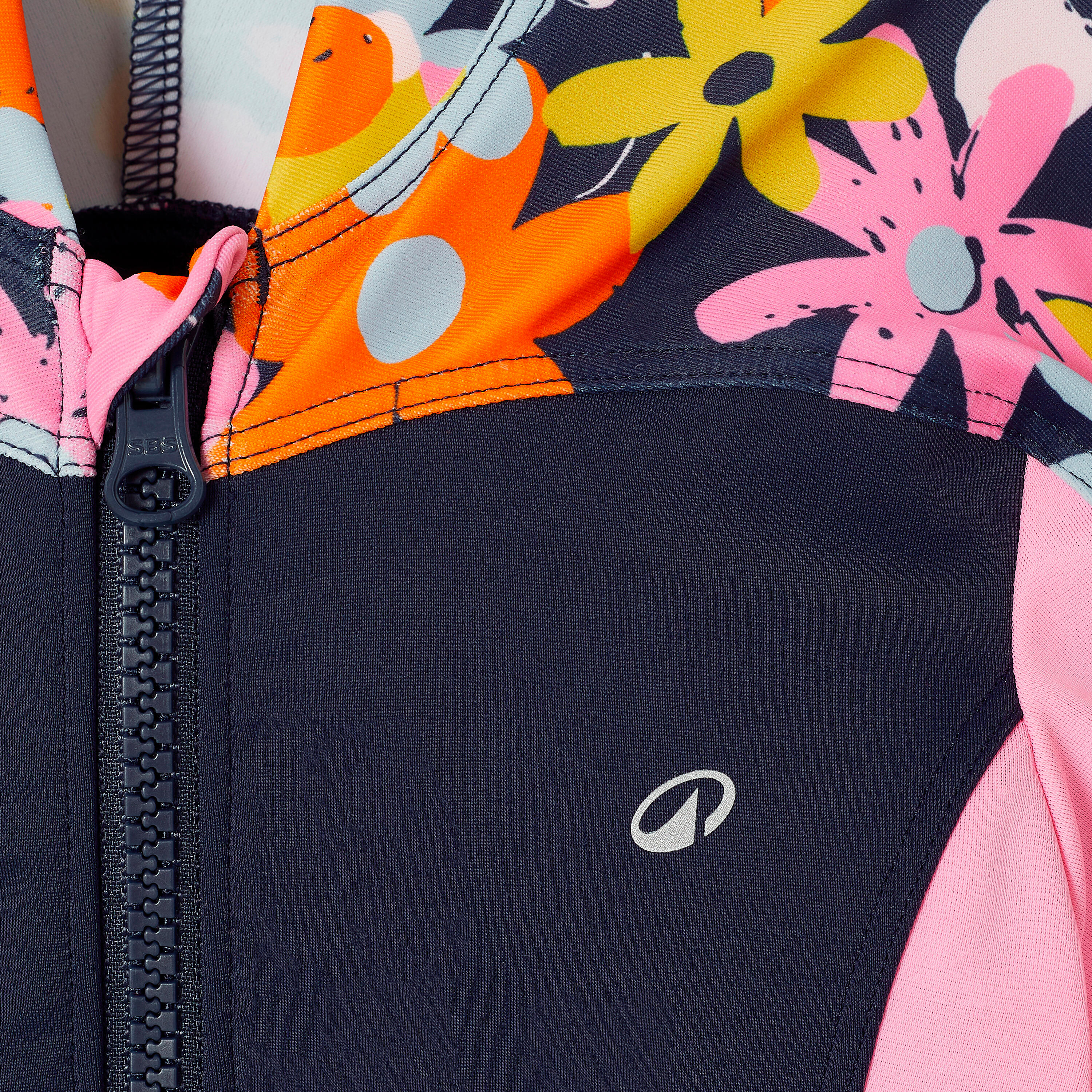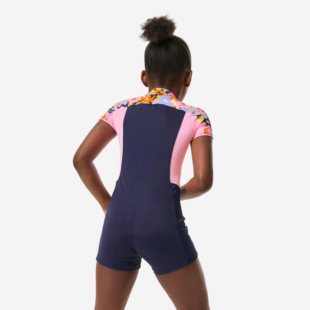 Young girls’ swimming shorty full-body swimsuit, Una lys navy