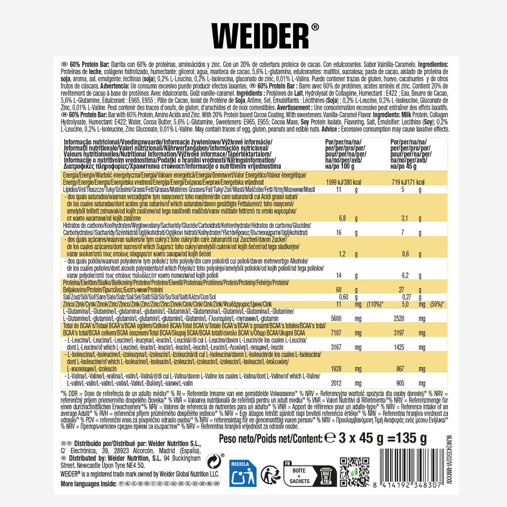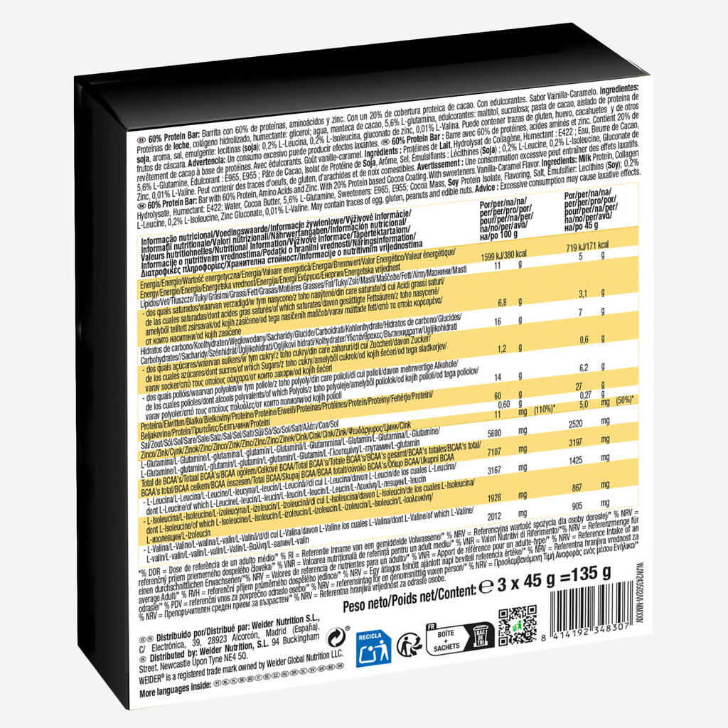 Each bar provides 2.5 grams of L-Glutamine to promote recovery after each training session.To round off the exclusive 60% Protein Bar formula, 5 mg of zinc has been added — an essential mineral for good hormone functioning and the body's antioxidant capacity.What's more, the 60% Protein Bar contains no aspartame or palm oil.