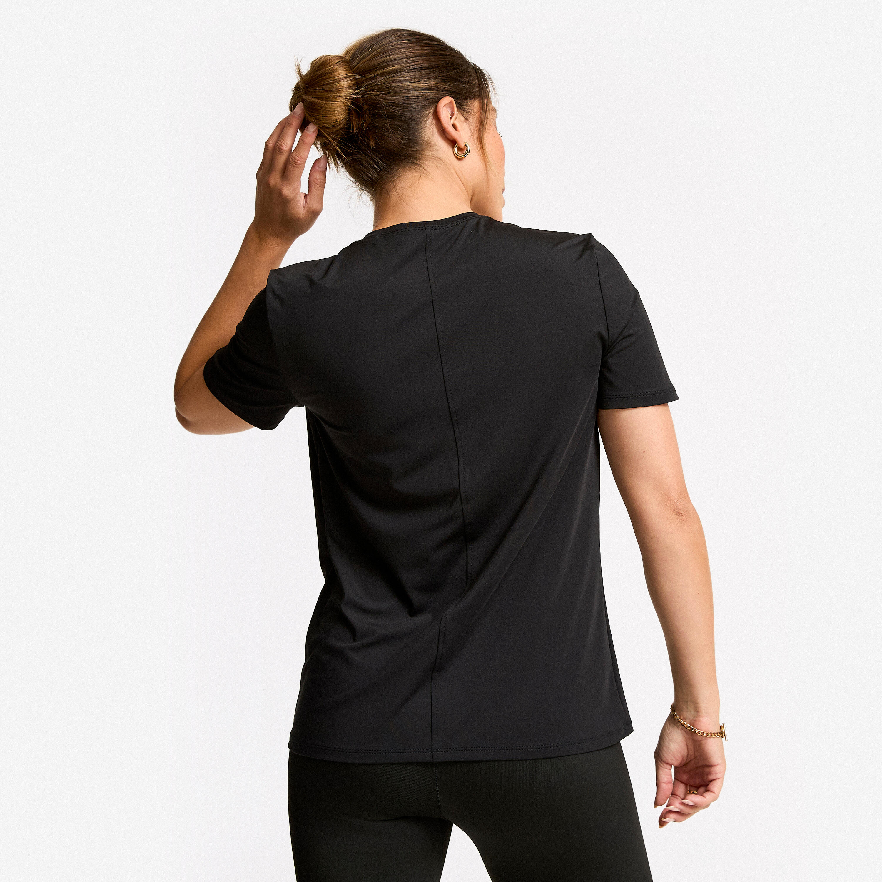 This Essential T-shirt is a staple of your sports wardrobe. It meets the fundamental needs of fitness training: comfort, freedom of movement and moisture management. A versatile T-shirt that you can wear before, during and after your workouts.