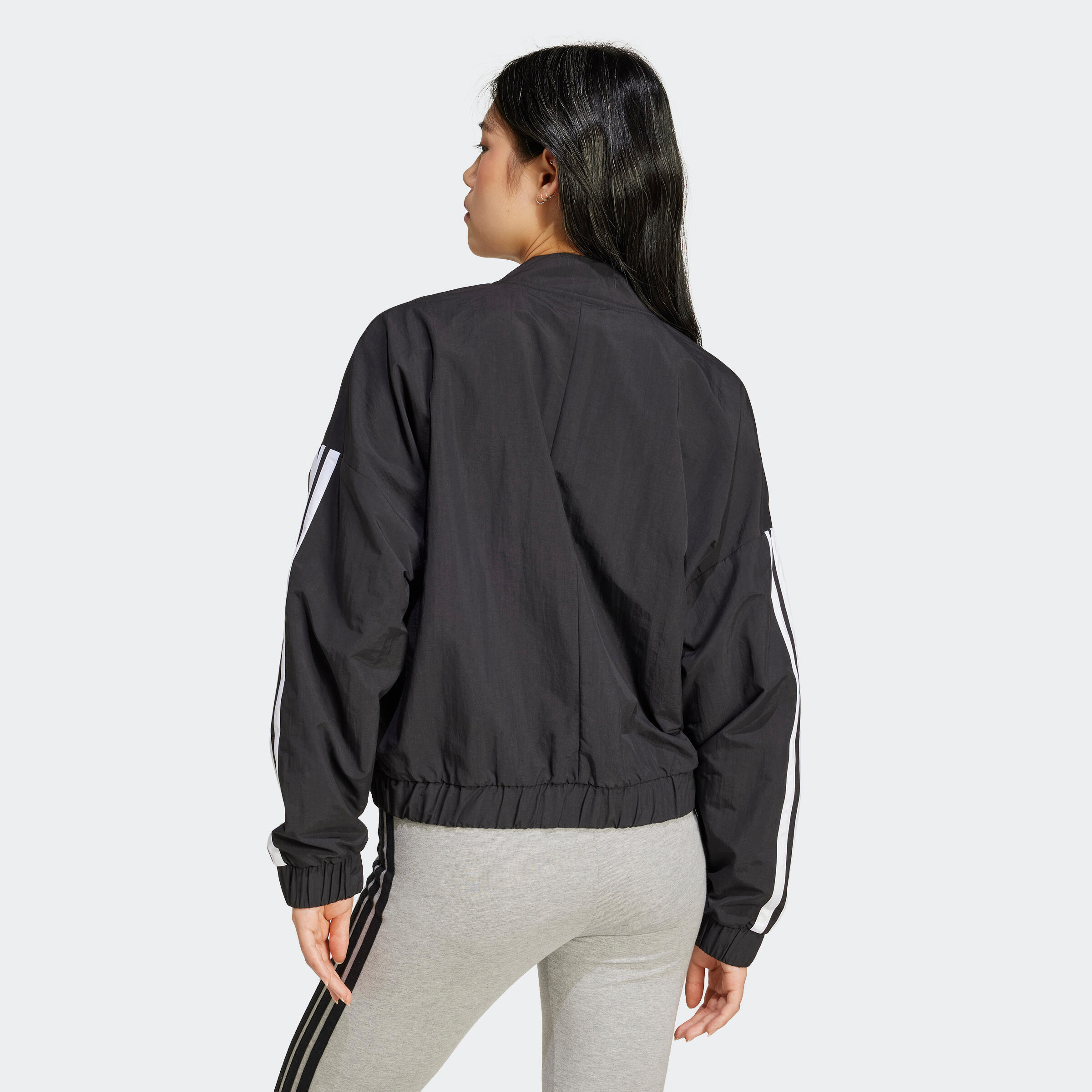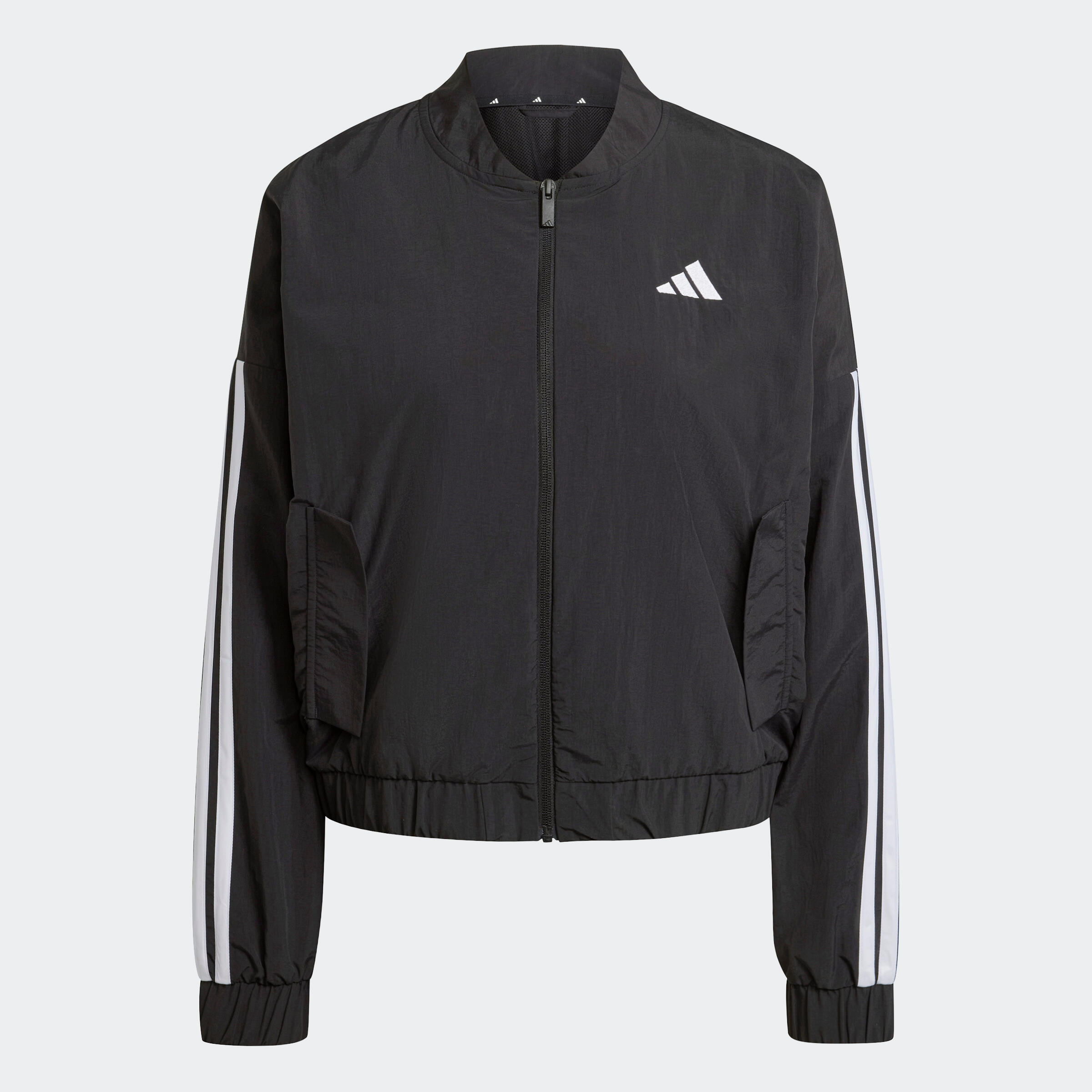 This Adidas bomber jacket is one of those items that are essential to a fashionable wardrobe.The woven material is lightweight yet resistant, perfect for mid-season or when you need an extra layer.