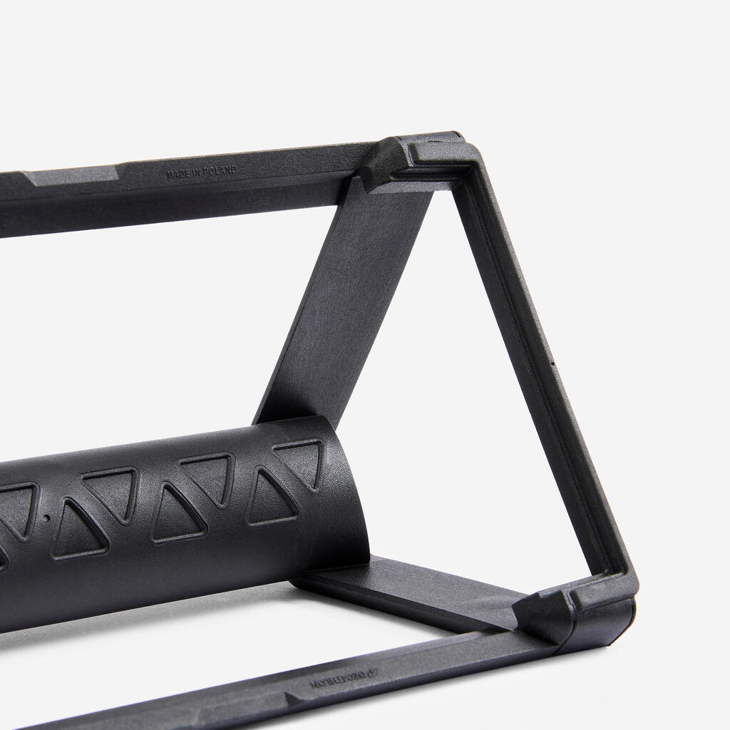- The ergonomic shape was specially designed for optimal comfort during press-ups and dips.