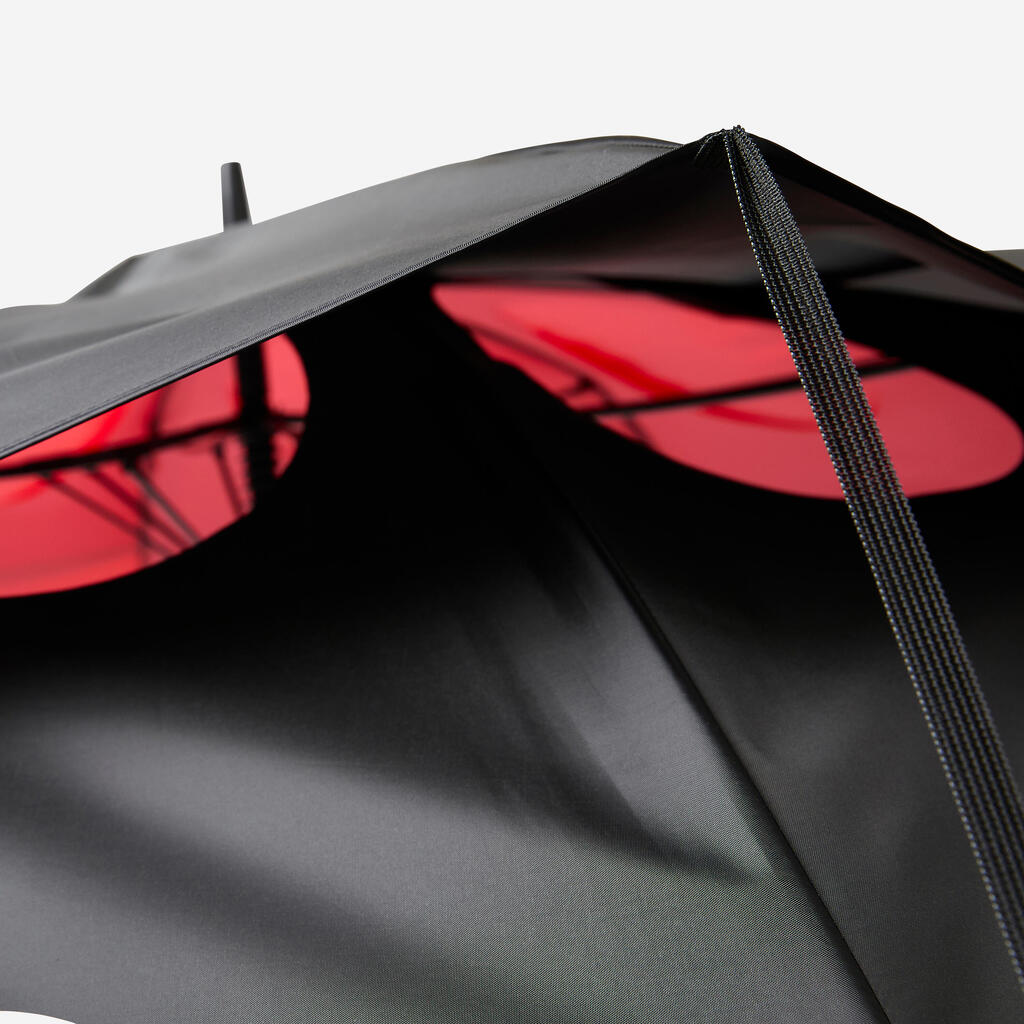 With its 170 cm span, you’ll be perfectly protected under this umbrella. Anti-flip double canopy, UPF 50+ UV protection. It’s ready to take on the elements.