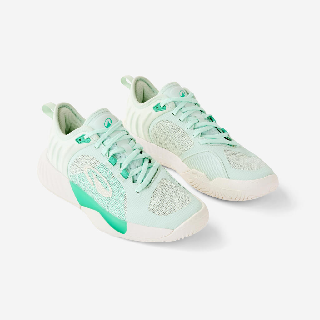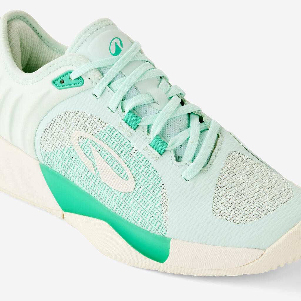 Securing your footing with its asymmetrical construction and reinforced heel, this tennis shoe is abrasion-resistant and will serve you match after match.