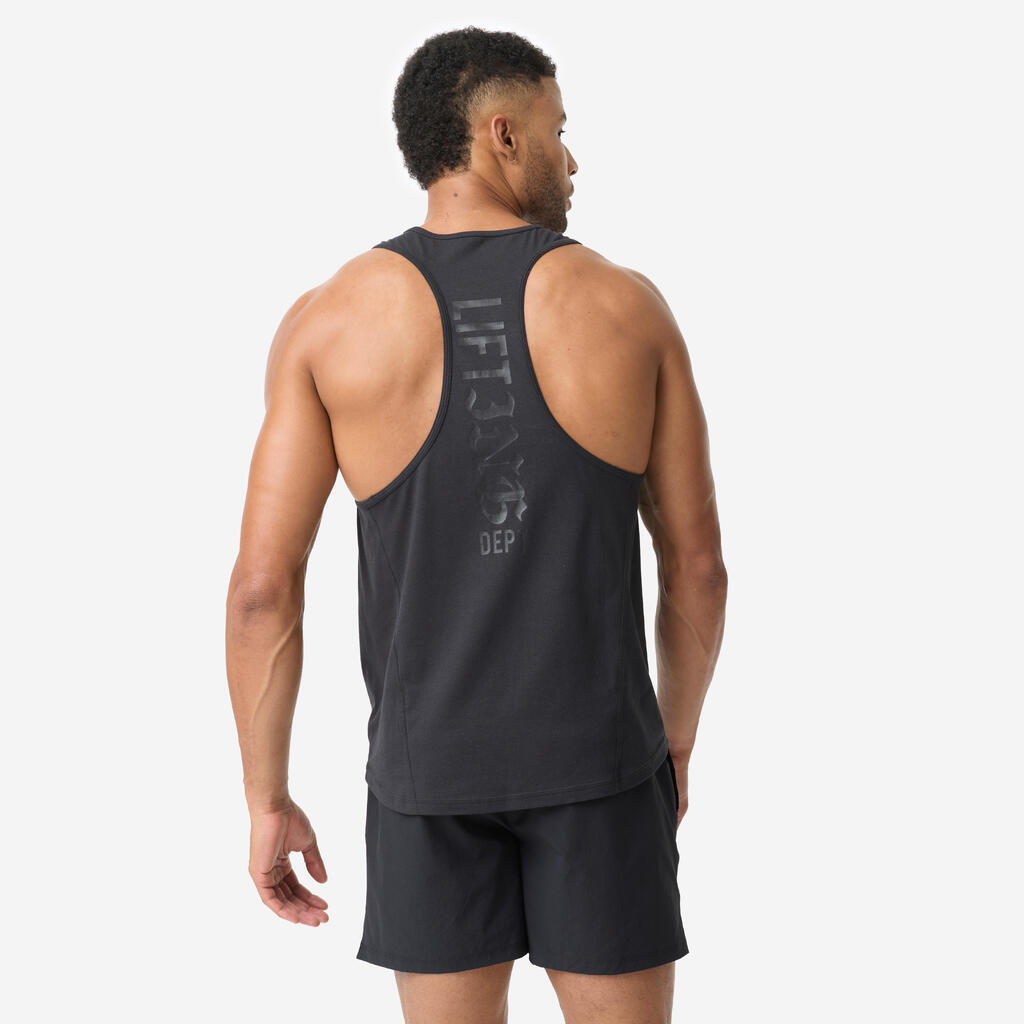 This stringer tank top is the direct result of listening to your feedback at the gym. The problem of T-shirts riding up, the desire for a cut that flatters your physique, the need for a fabric you can feel: every feature responds to a concrete observation from real-life weight training.