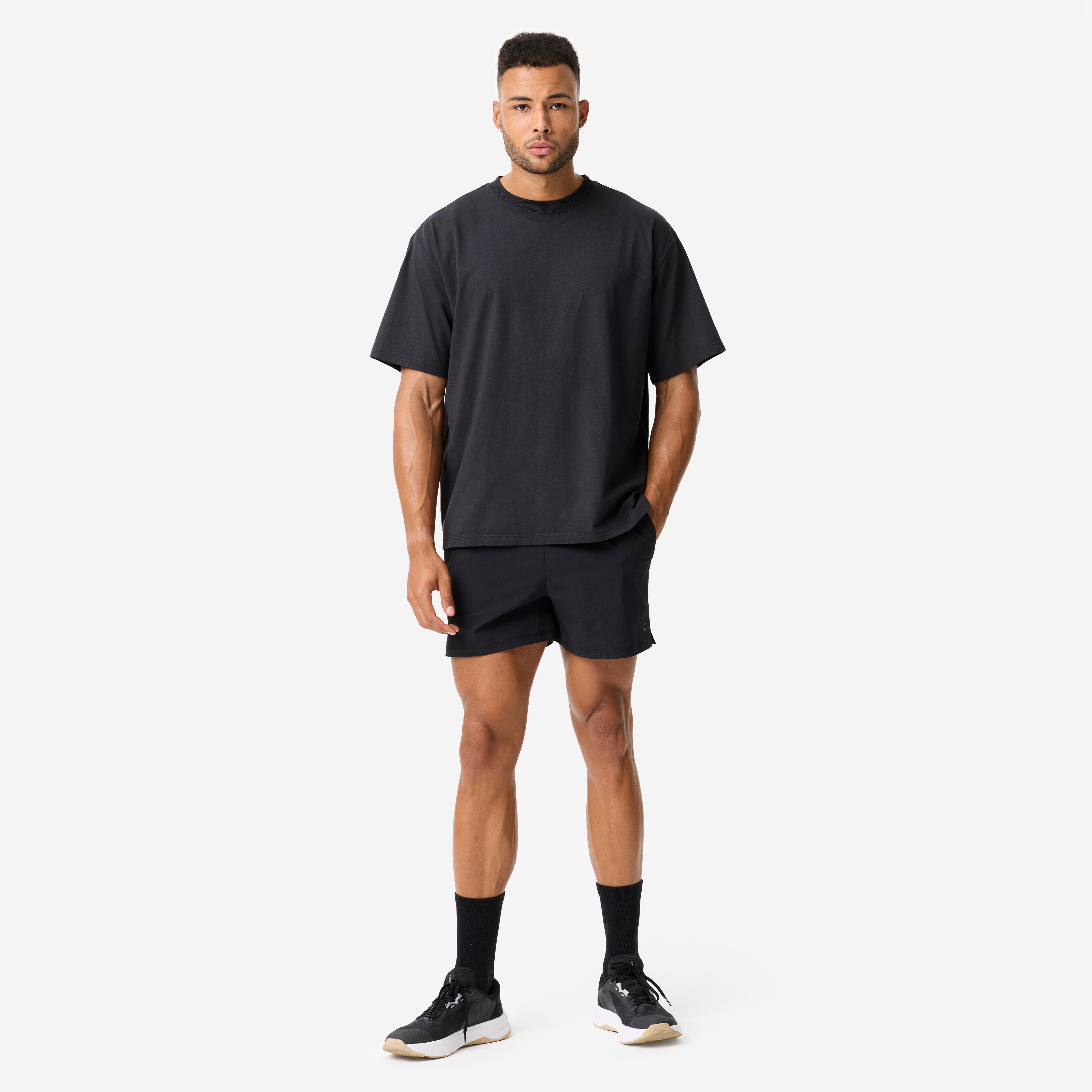 This T-shirt's oversize cut goes well past the shoulders and floats across your chest. This size is more than just aesthetics: it ensures total freedom of movement. Bench presses, pulls, dips... you won't be limited by a single exercise. The stretch fabric supplements this freedom by moving with every muscle contraction, every extension, every full range of motion.