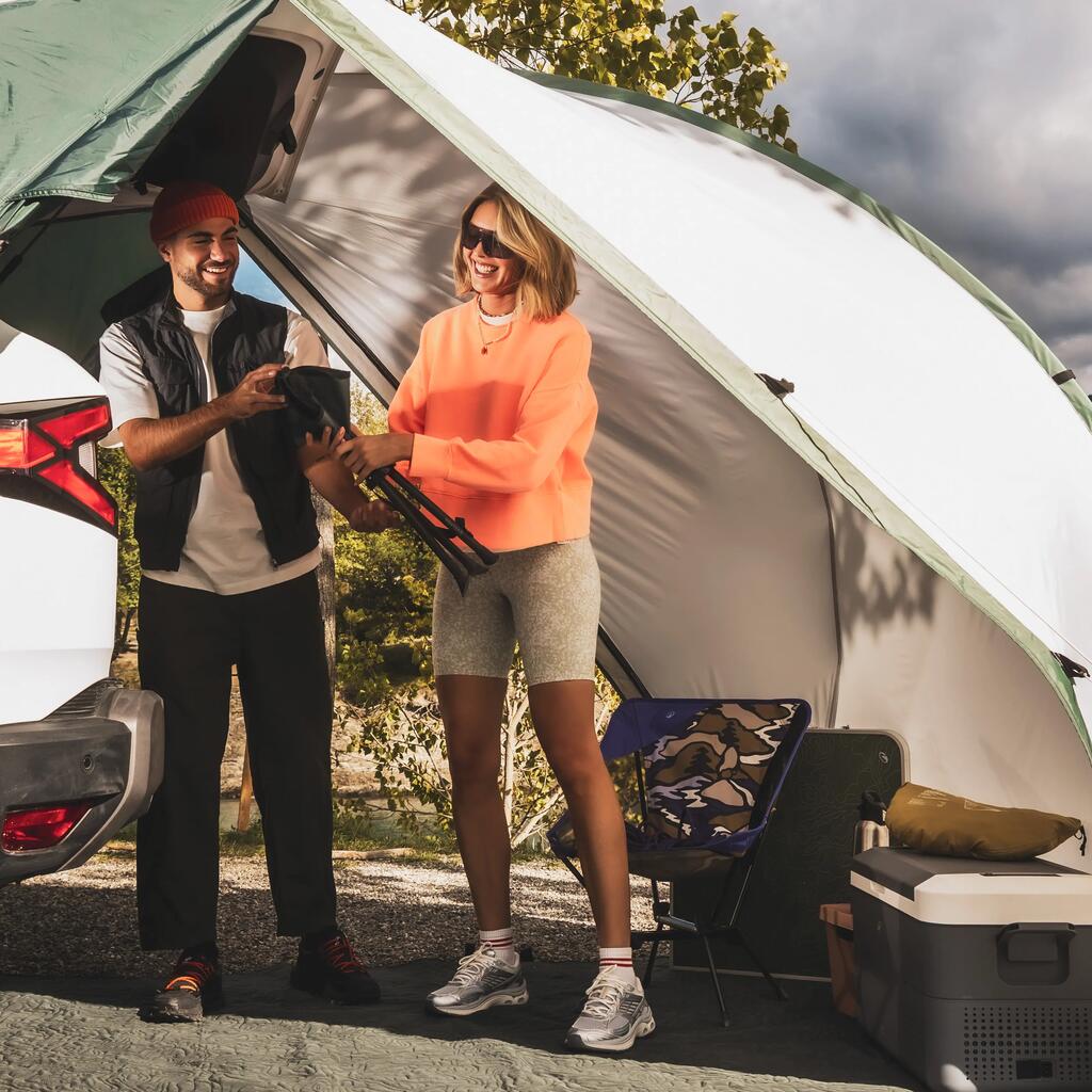 This shelter has two side openings, a clothesline and a hook for hanging a lamp. It can accommodate a table and two chairs, so you can enjoy your meals, while you stay dry and protected from the sun!