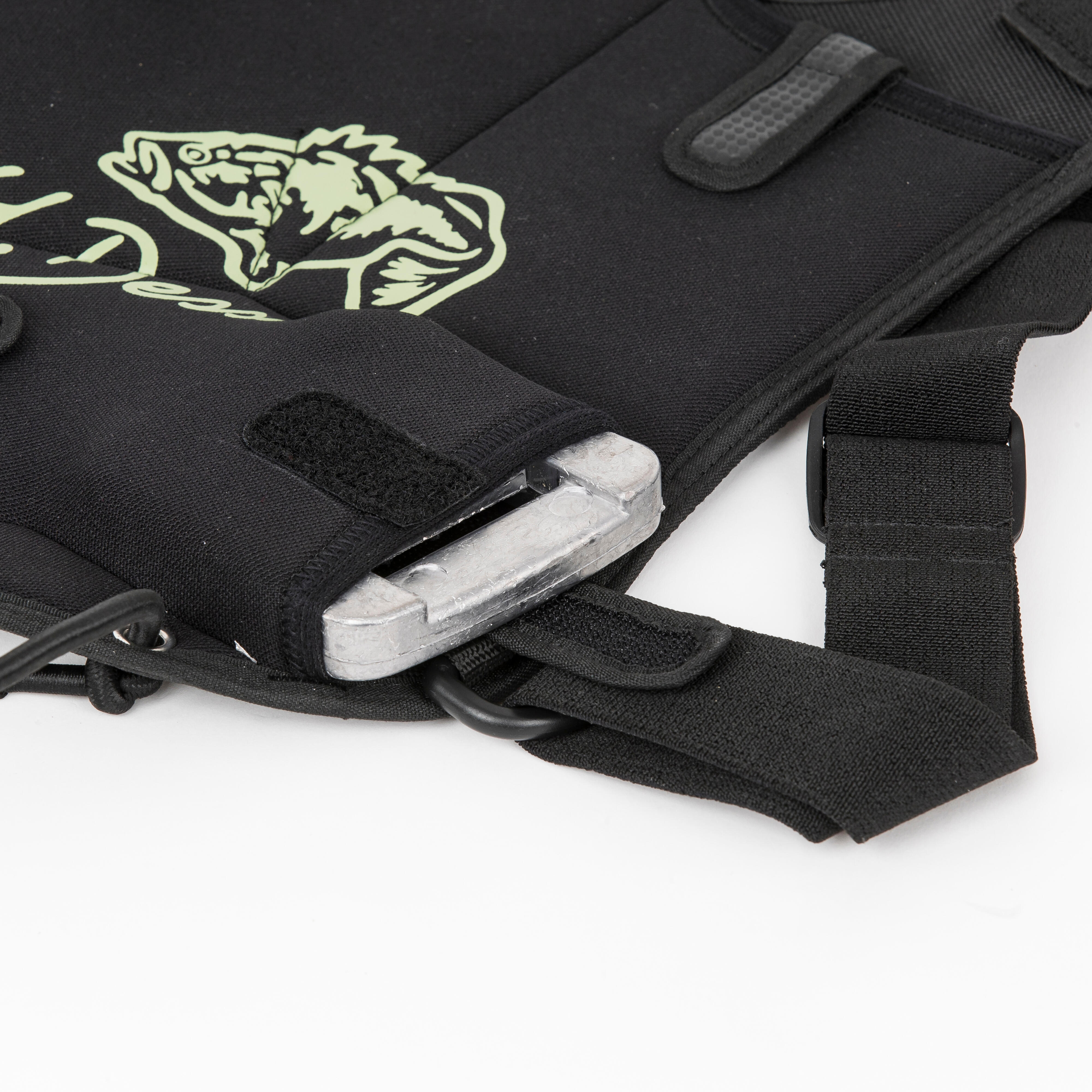 The weight pockets have a neoprene outer with a cut-resistant liner and a fastening system with rip-tab flap.