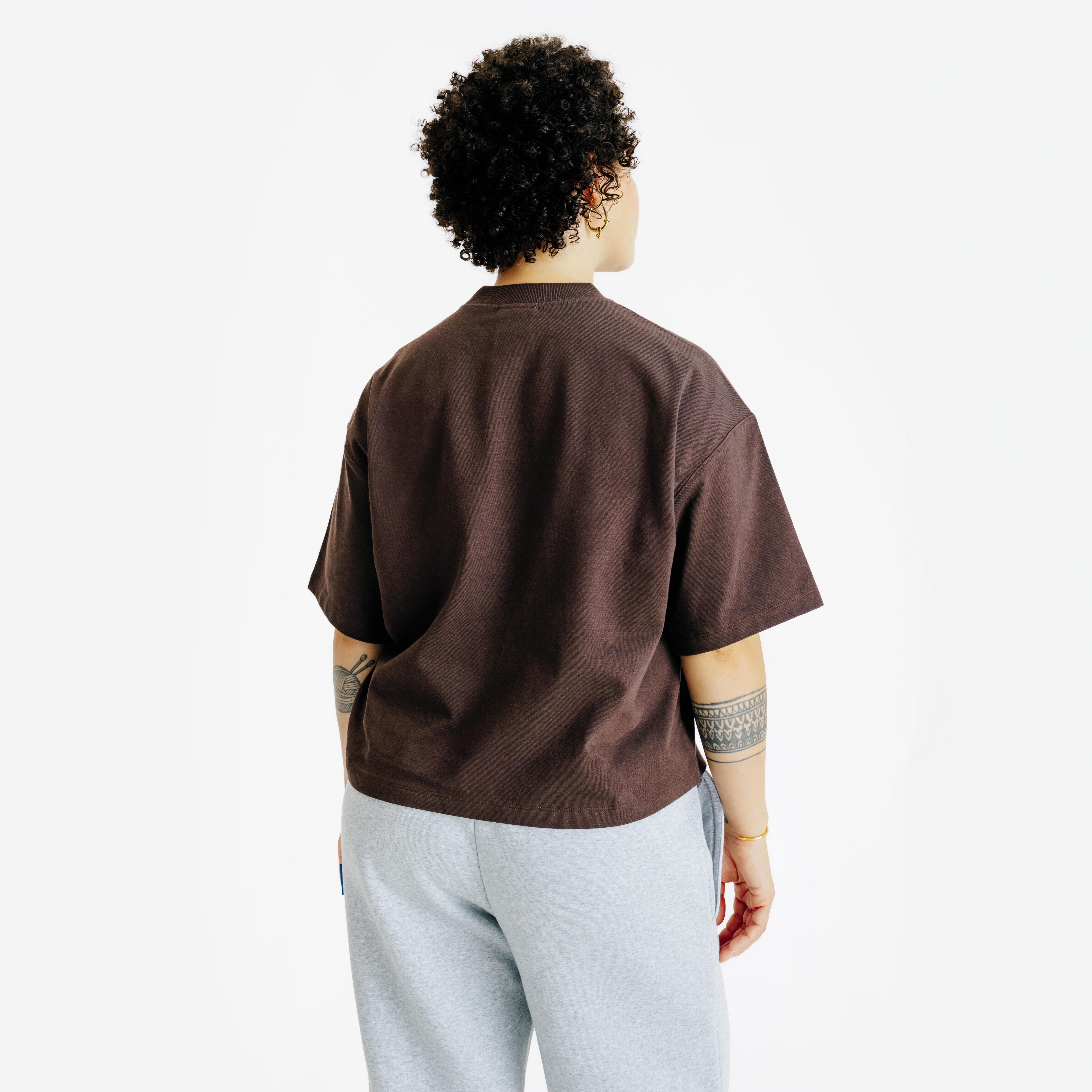 A basic, streamlined crop t-shirt, an everyday essential: simple but effective, it will quickly become a wardrobe essential.