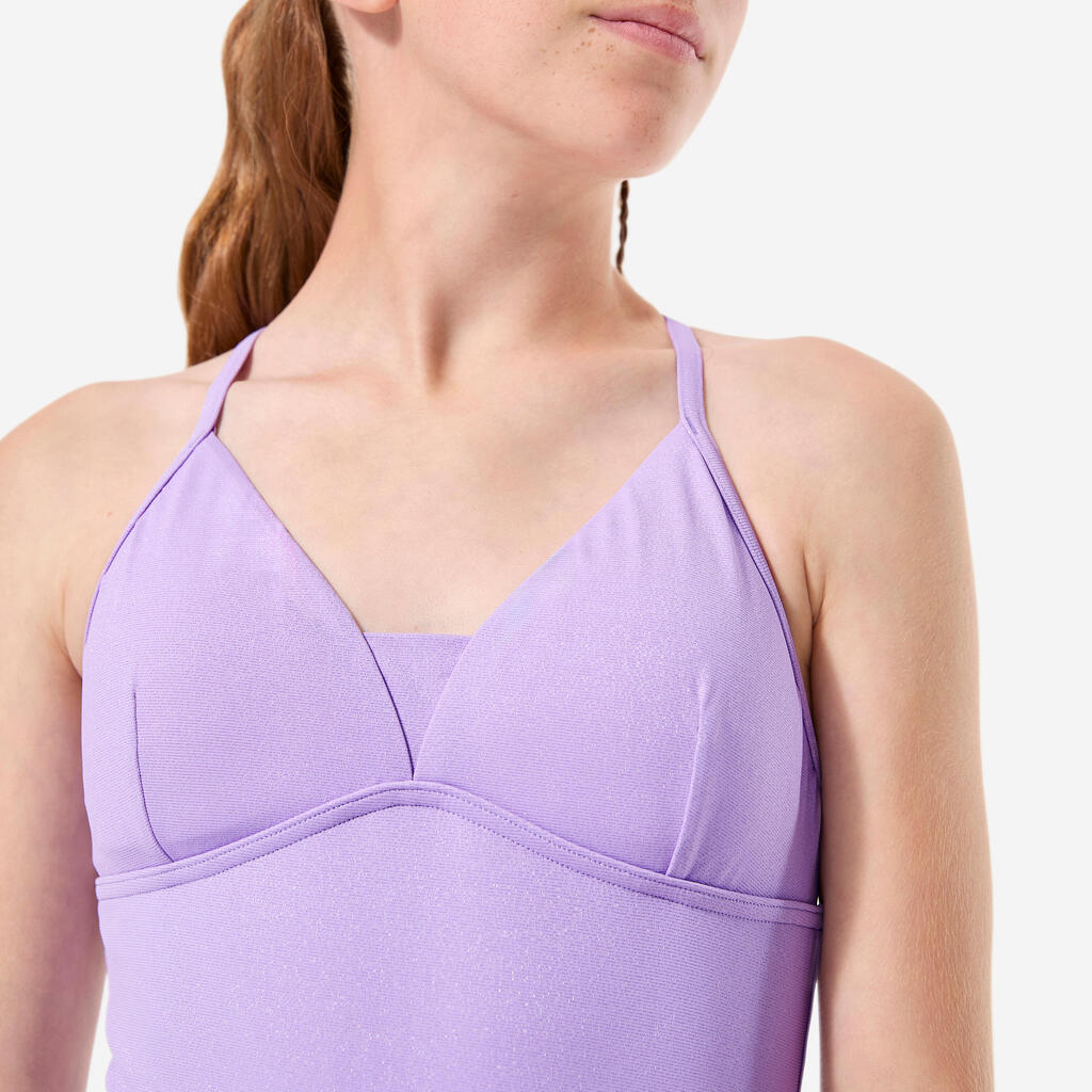 Girls’ surfing lurex 1-piece swimsuit with crossed straps, Caly zuma purple