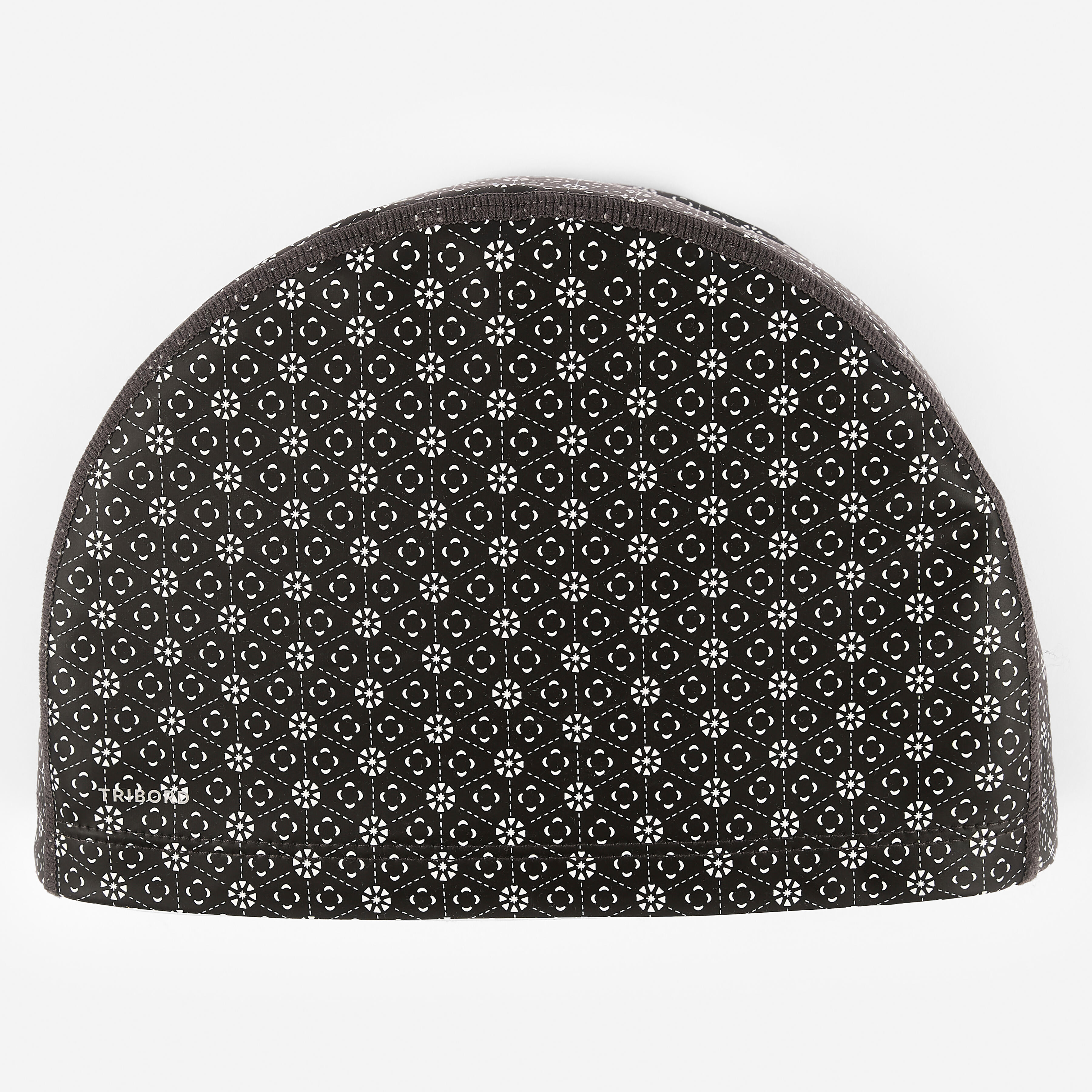 Made from a fabric similar to a swimsuit, it is easy to put on without pulling your hair. It is finished with a seam around the head for a secure fit.