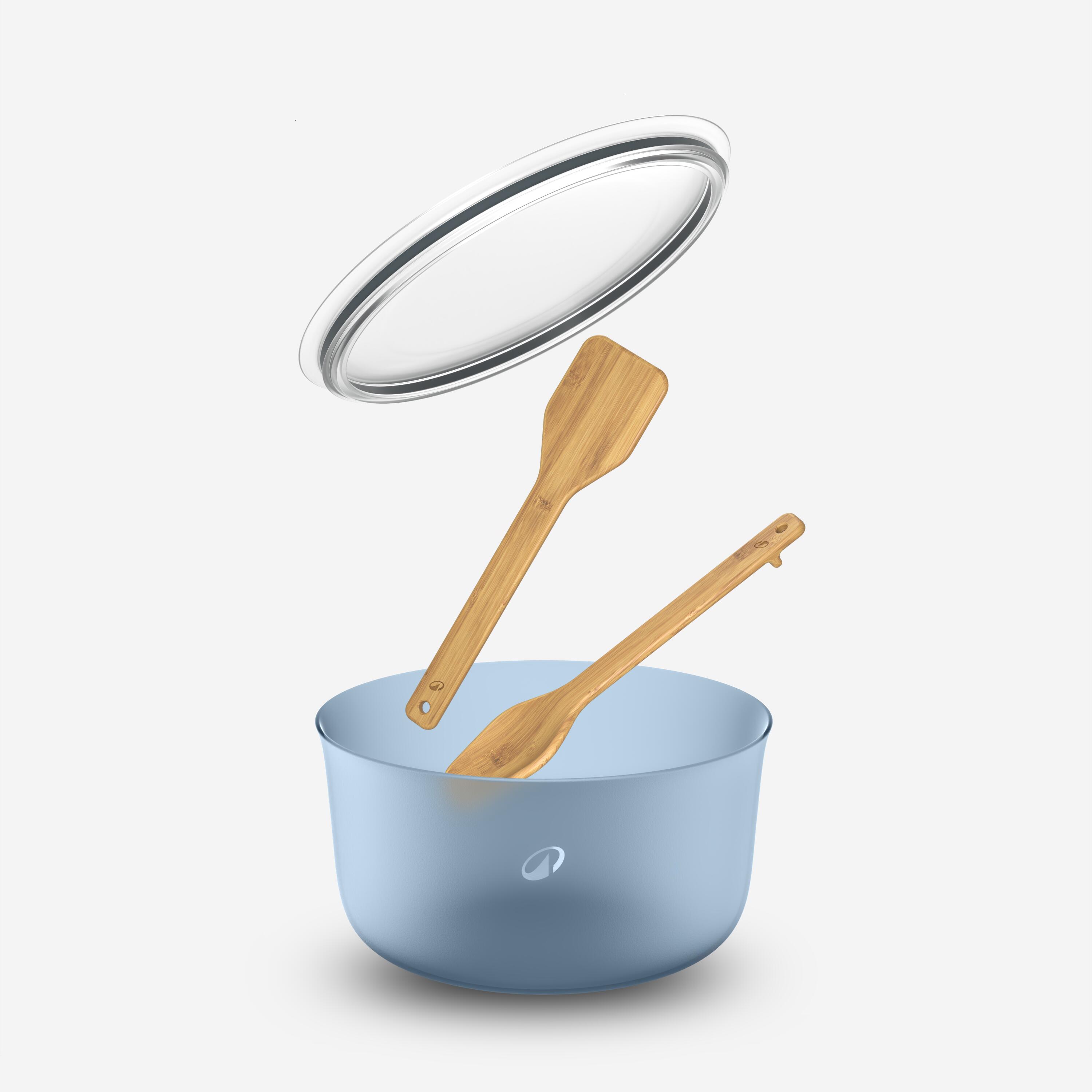The kit includes a 3.5-litre serving bowl, a wooden spatula and spoon, and an airtight lid. With this comprehensive set, you can easily prepare, serve and store meals when camping or at home, with suitable utensils and a hard-wearing container!