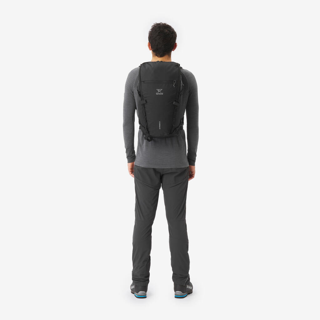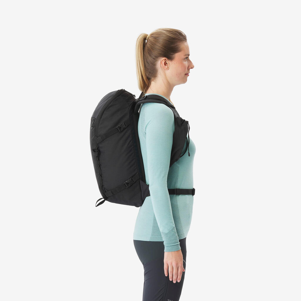 22 litres is the ideal volume for a day mountaineering bag. The compromise between carrying capacity and lightness is essential for this type of outing.